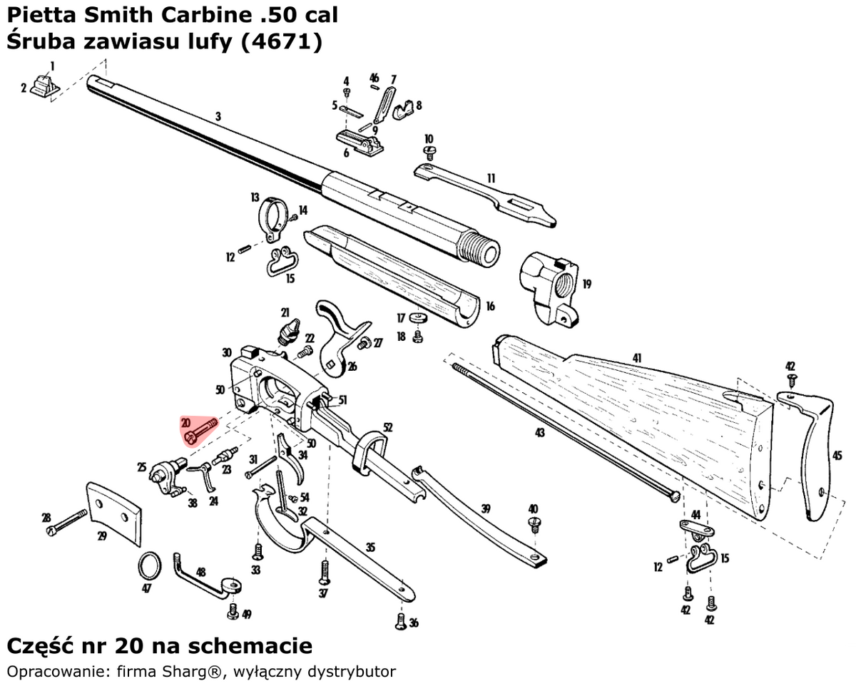 • 4671 (service) bolt of the barrel hinge of the Italian company Pietta for the Smith Carbine Cavalry (SMT50) and Smith Carbine Artillery (SMTA50) black powder rifles.