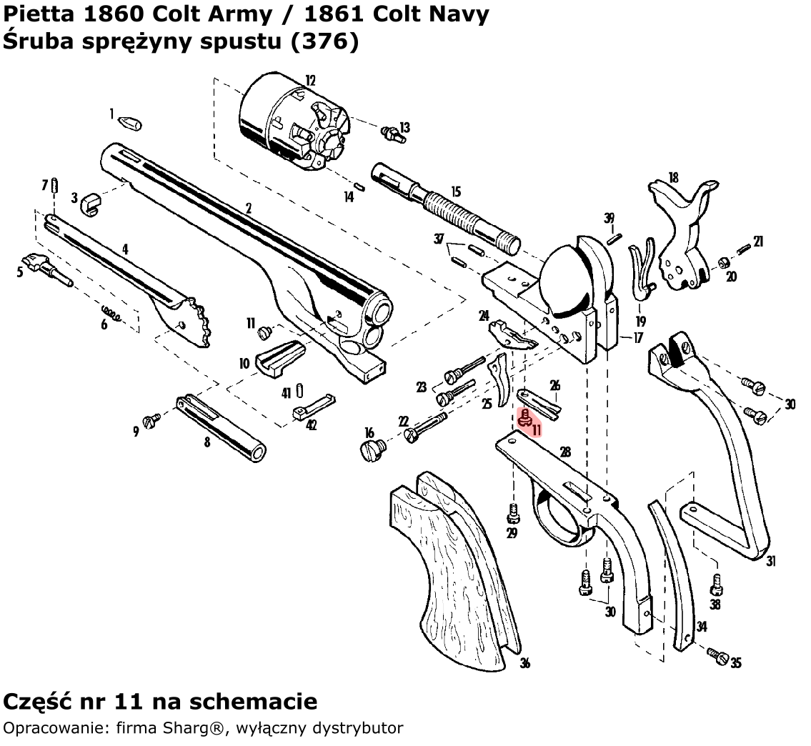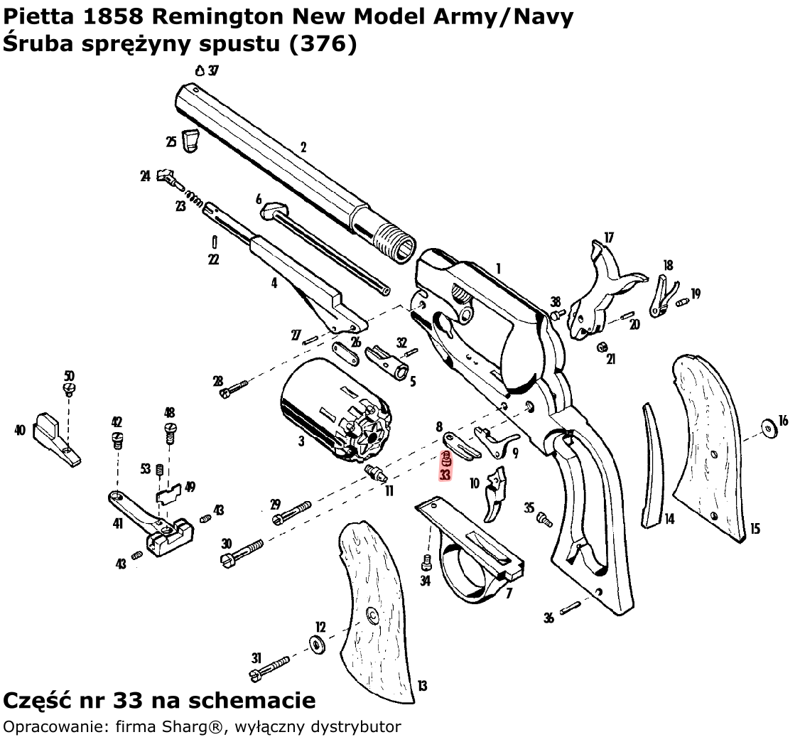 - 376 (service) trigger bolt spring for blackpowder revolvers: 1851 Colt Reb Nord Navy, 1860 Colt Army, 1861 Colt Navy, 1858 Remington New Model Army (.44 inch) / Navy (.36 inch) and 1862 Spiller & Burr by Pietta .