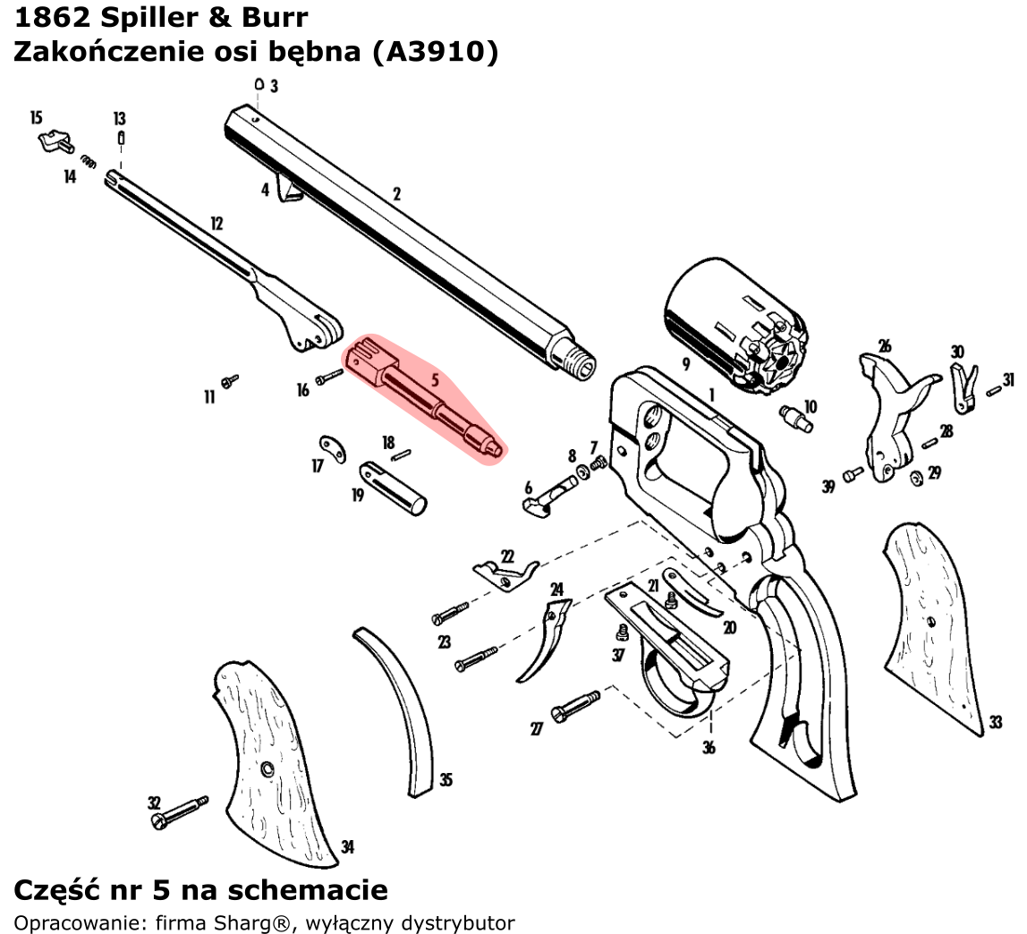 - A3910 (service) the axle finish of the cylinder blackpowder revolver 1862 Spiller & Burr. 36 cal made by Pietta Company.