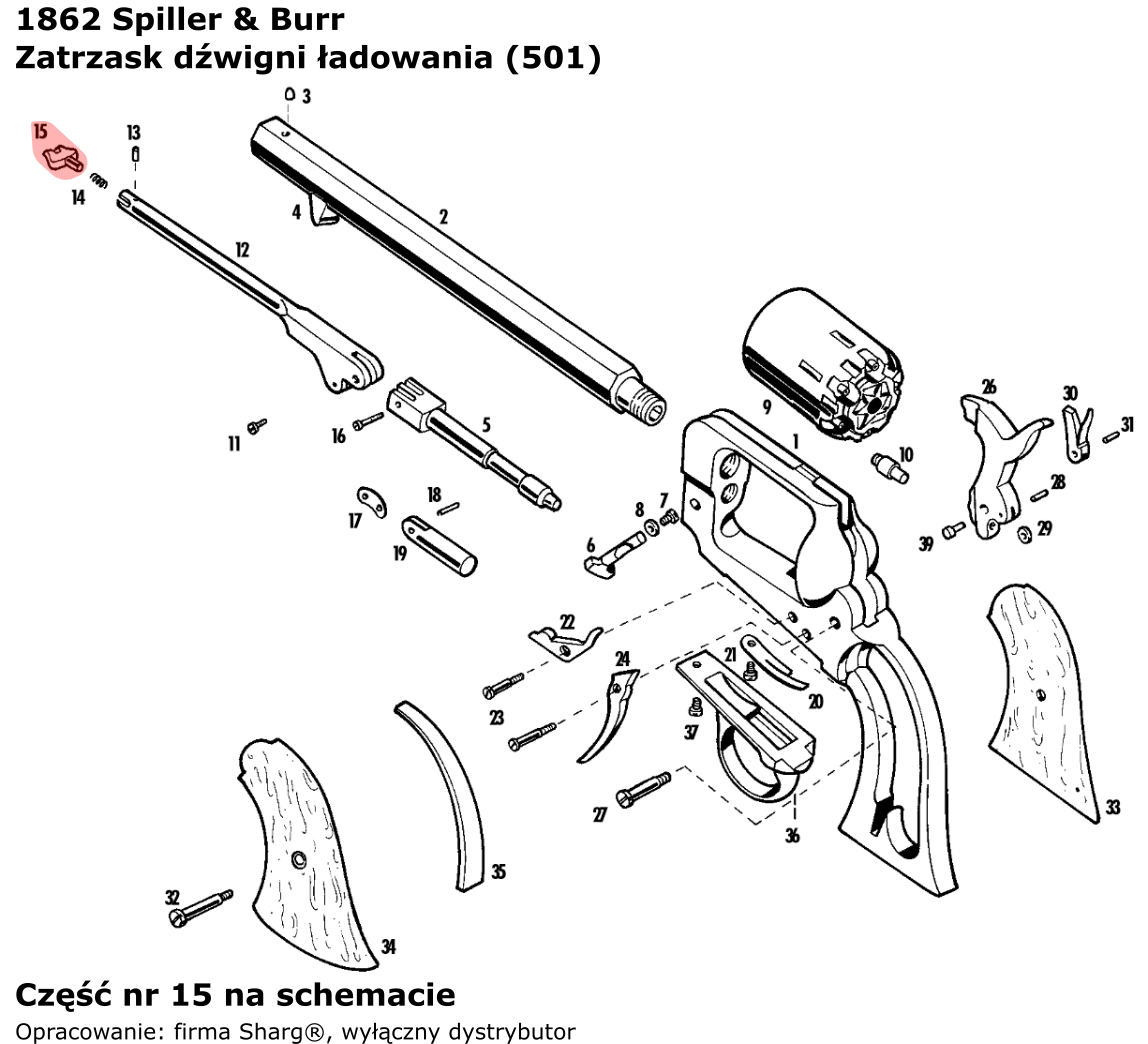 - 501 (service) loading lever lock for Pietta black powder revolvers. 1858 Remington New Model Army .44 inch / Navy .36 inch. Also fits 1862 Spiller & Burr.