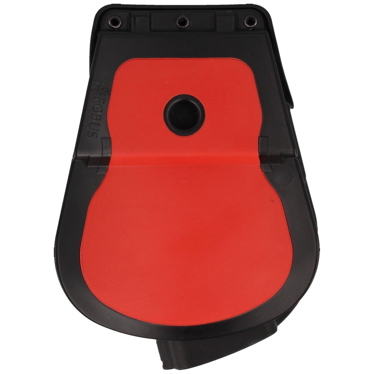 Type of holster - professional line ND (New Design) of the new generation of holsters Fobus. Made of one piece of plastic, lightweight despite additional features. Contain a strip of metal to reinforce the rivets attaching the holster to the flipper which improves strength and reliability. Weight reduction was achieved by using holes on the surface of the holster. Series ND has an additional screw at the holster for individual adjustment of the holster's tightness. The adjustment affects the force with which the weapon is held in the holster and the force with which it is drawn from the holster. Low profile makes it easier to conceal the weapon, increasing carrying comfort.