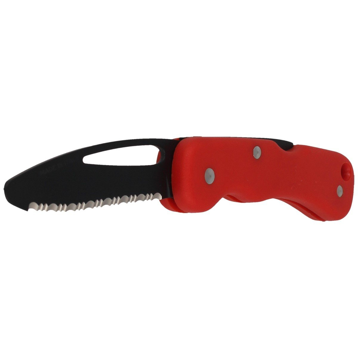 • 697 RESCUE 2 RED one of the lightest rescue knives available on the market! Safe blade coated with IDROGLIDER GOLD Black matte coating. For aggressive cutting of textile materials, hard plastics and fibrous materials: ropes, cords, tapes, belts.