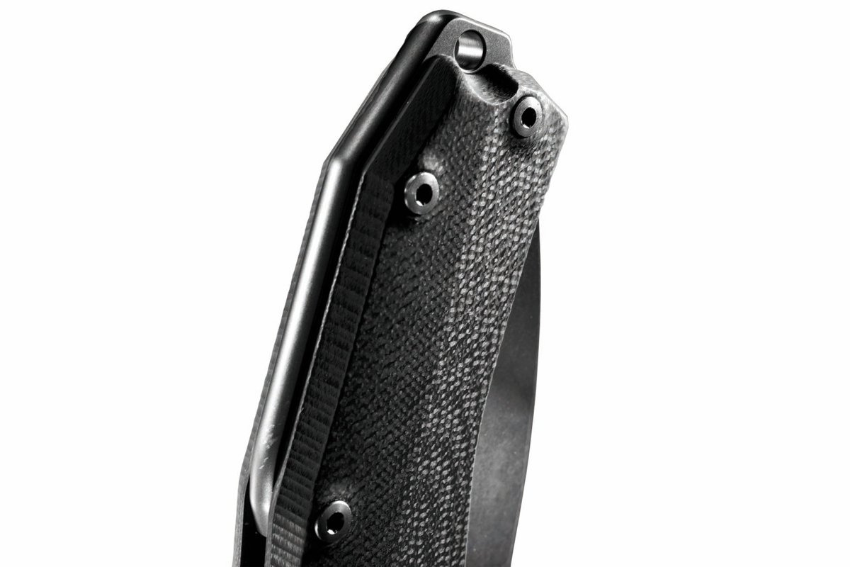 Handle - was based on steel liners and backspacer made of titanium 6AI4V, which provides high rigidity and mechanical resistance. The construction is overlaid with milled G10 composite grips, which, thanks to their three-dimensional profile, increase comfort and grip - even in wet conditions. Prominent finger undercuts and rounded edges promote long-lasting use. The wire deep carry clip used allows discreet carrying in a pocket, while the lanyard hole and the protruding section of the backspacer can serve as an emergency nailer. The whole creates an ergonomic and reliable folder, designed for full comfort and functionality in daily EDC.