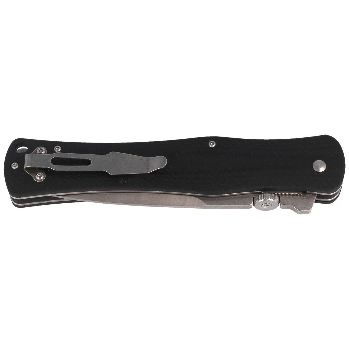 Handle - profiled, polished G-10 material (resistant to temperatures, chemicals) provides a comfortable grip also with large hands. A metal two-position clip (left / right) allows you to carry the knife in the tip-up position. At the back of the handle, lanyard hole, a hole for a safety rope.