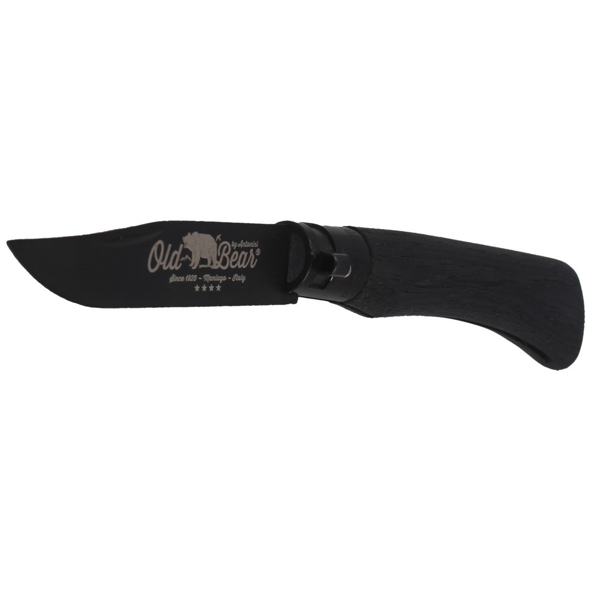 Old Bear Medium Total Black, Aluminum Collar ultralightweight 31g folding knife with simple ergonomic lines with a distinctive locking blade. Exclusive italian the equivalent of an Opinel-type knife. Available in five sizes: XS (15.0 cm - 7 ⅚"), S (17.0 cm - 6 ¾"), M (19.0 cm - 7 ½"), L (21.0 cm - 8¼") and XL (23.0 cm - 9"). The perfect choice for lovers of classic design.