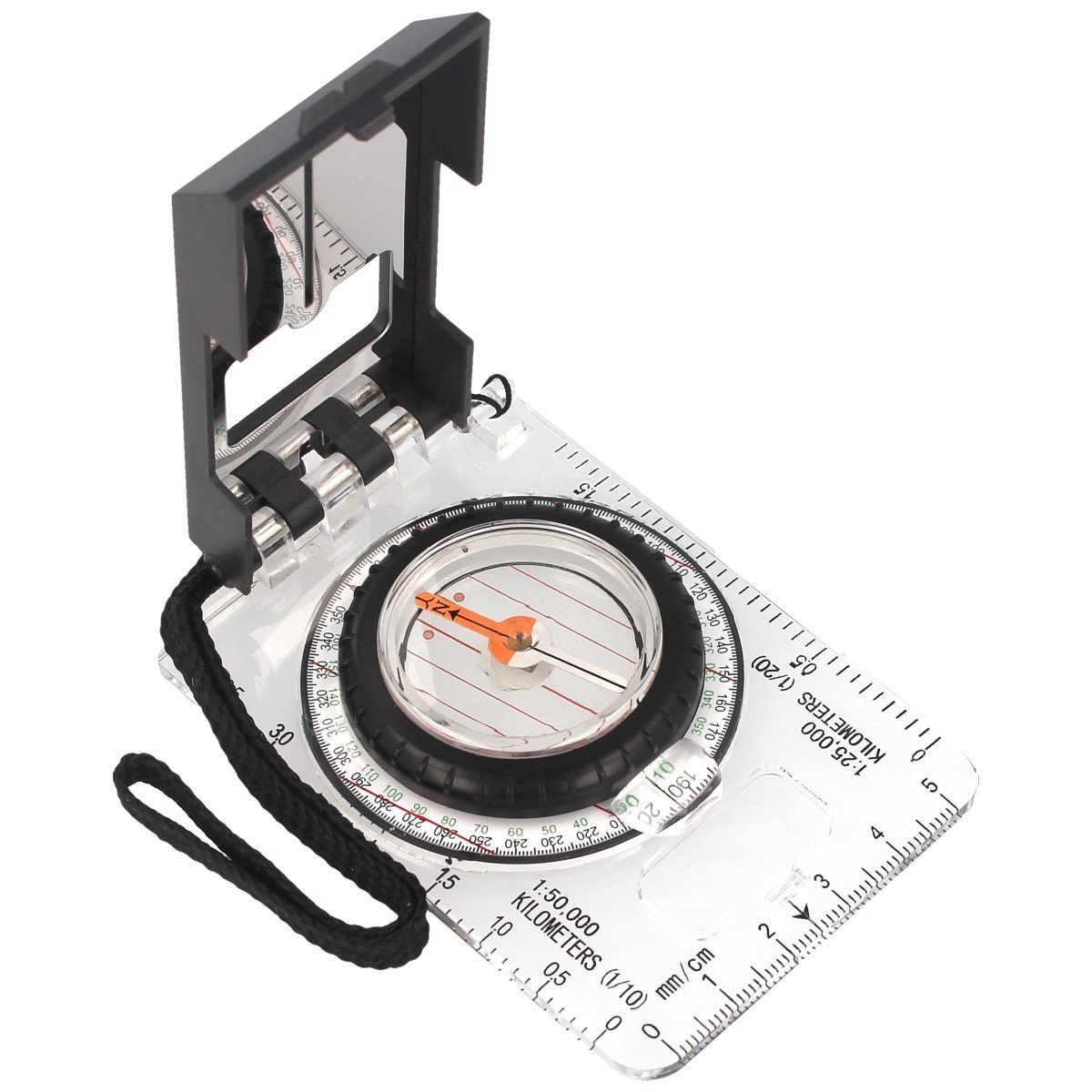 The compass is equipped with a millimeter scale of 1: 25,000 K and 1: 50,000 K, making it easier to assess distances on the map. The rotating ring is covered with plastic that facilitates efficient operation in all weather conditions. Equipped with a mirror and a magnifying glass for easy reading.