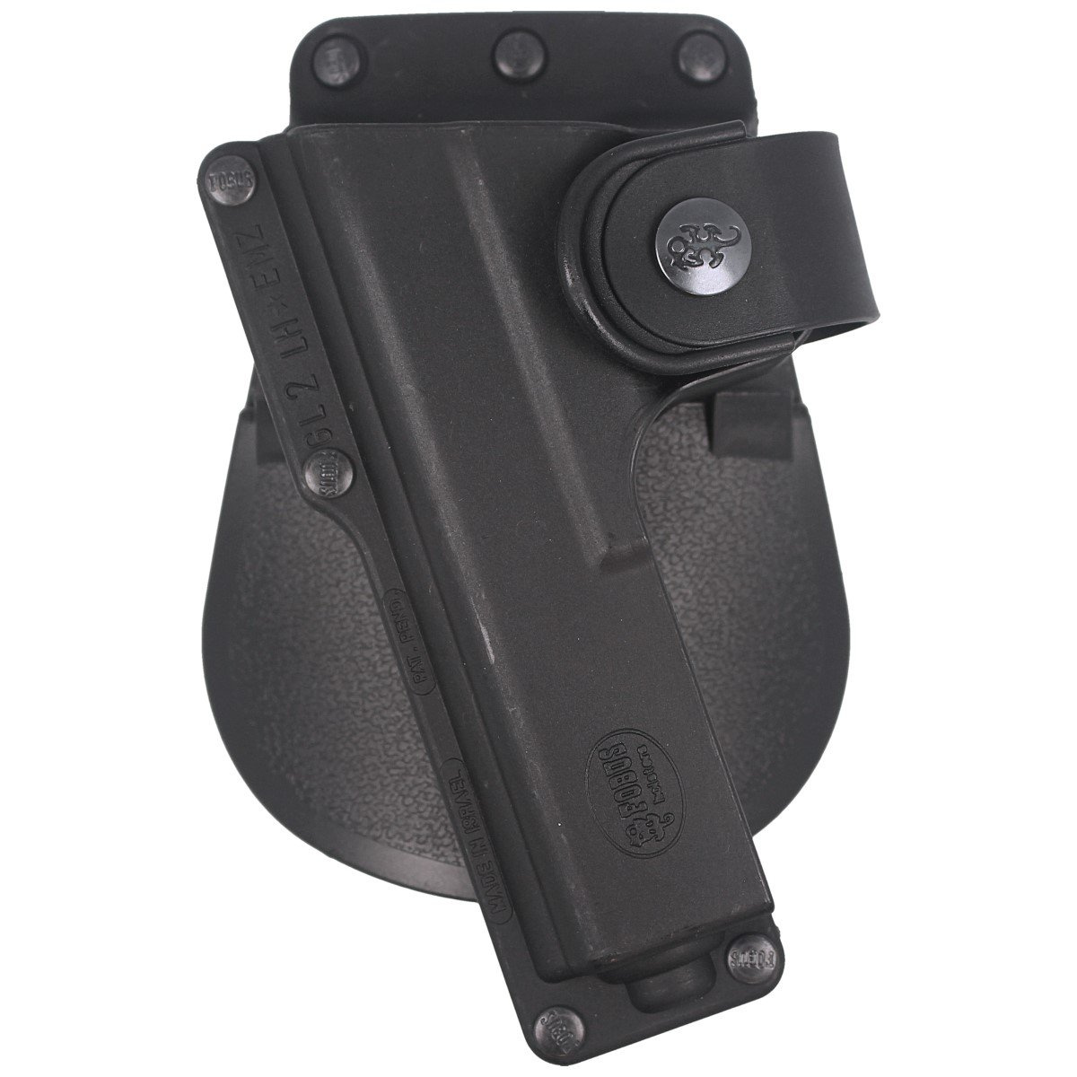 • EM17 LH (Paddle) tactical holster Fobus EM left. For weapons with tactical lighting, laser target pointer, glass breaker. Glock: 17, 22, 31. S&W: M&P PRO, M&P 9mm / .40 inch / .45 inch Full Size, Sigma 40VE. Ruger: SR45, Ruger American Pistol. 45 cal.