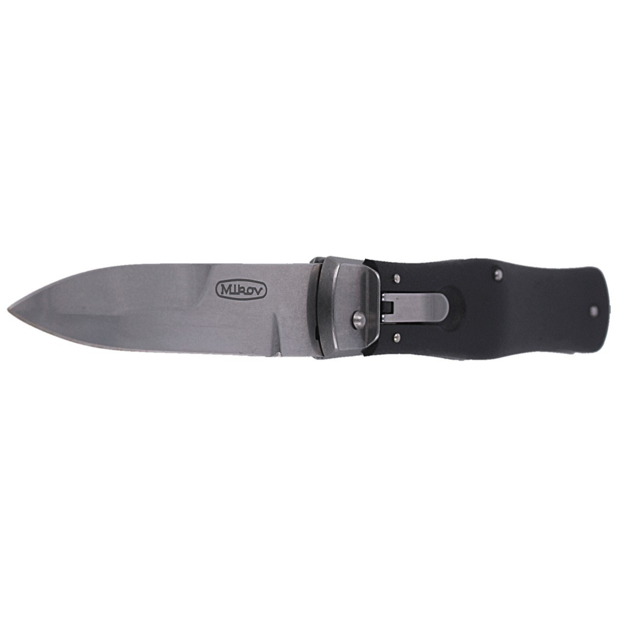 - Predator Black ABS, Stonewashed Mikov automatic knife with stonewash blade made of N690 steel. Solid construction, two strong opening springs, characteristic click when opening distinguish Predator from other spring knives. Leather case