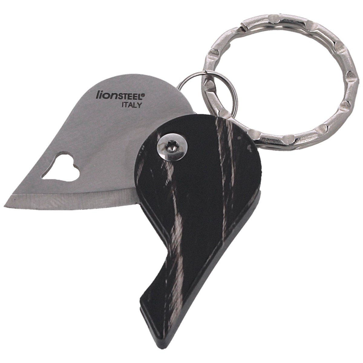 lionBEAT Buffalo Horn, ultralight knife by Italian manufactory LionSteel with facings of buffalo horn. Elegant and functional when folded it takes on heart shape. It can be used in many different ways: as a key ring, a pendant for a necklace or as a pendant for a bag / purse. An original gadget or gift idea for a loved one.
