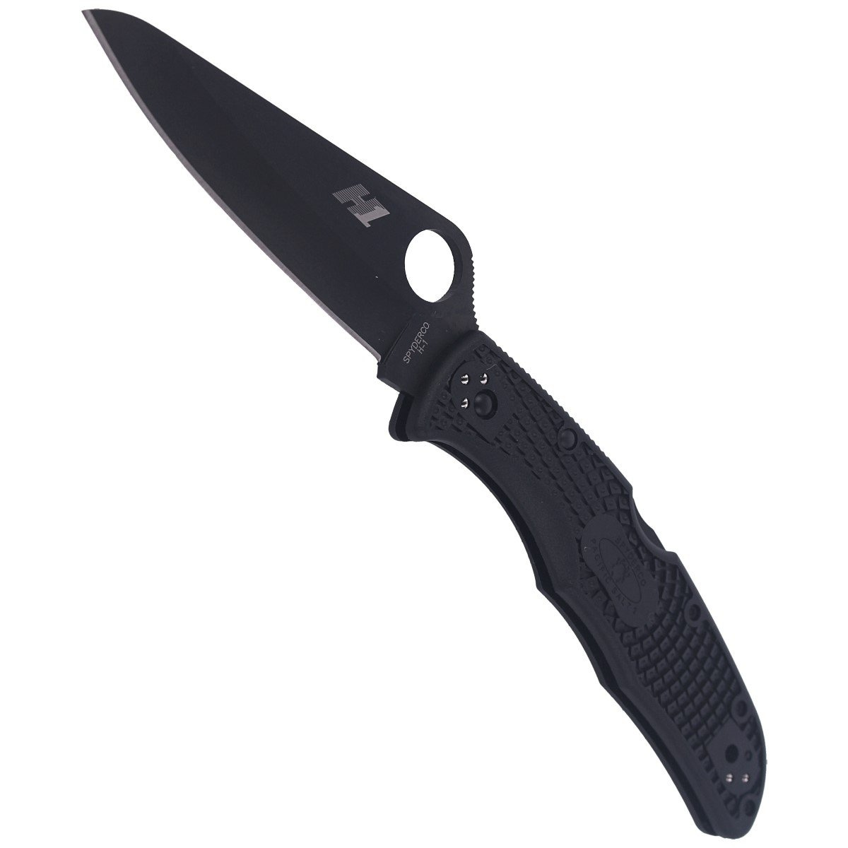 Blade - with Clip Point profile, 2.5 mm thick. The blade is covered with scratch resistant matt non-reflective TICN (Non-Reflective Titanium Carbonitride) coating in black color. The smooth Plain blade has a Hollow Grind for effective and deep cuts. Enlarged 14mm round SpyderHole (Spyderco patent) increases the thumb rest hump (notched ramp) and allows opening the knife with wet hands and a glove. Solid Back-Lock with additional cut-out designed by Boye Detent, preventing accidental release of the lock when the knife is firmly gripped.
