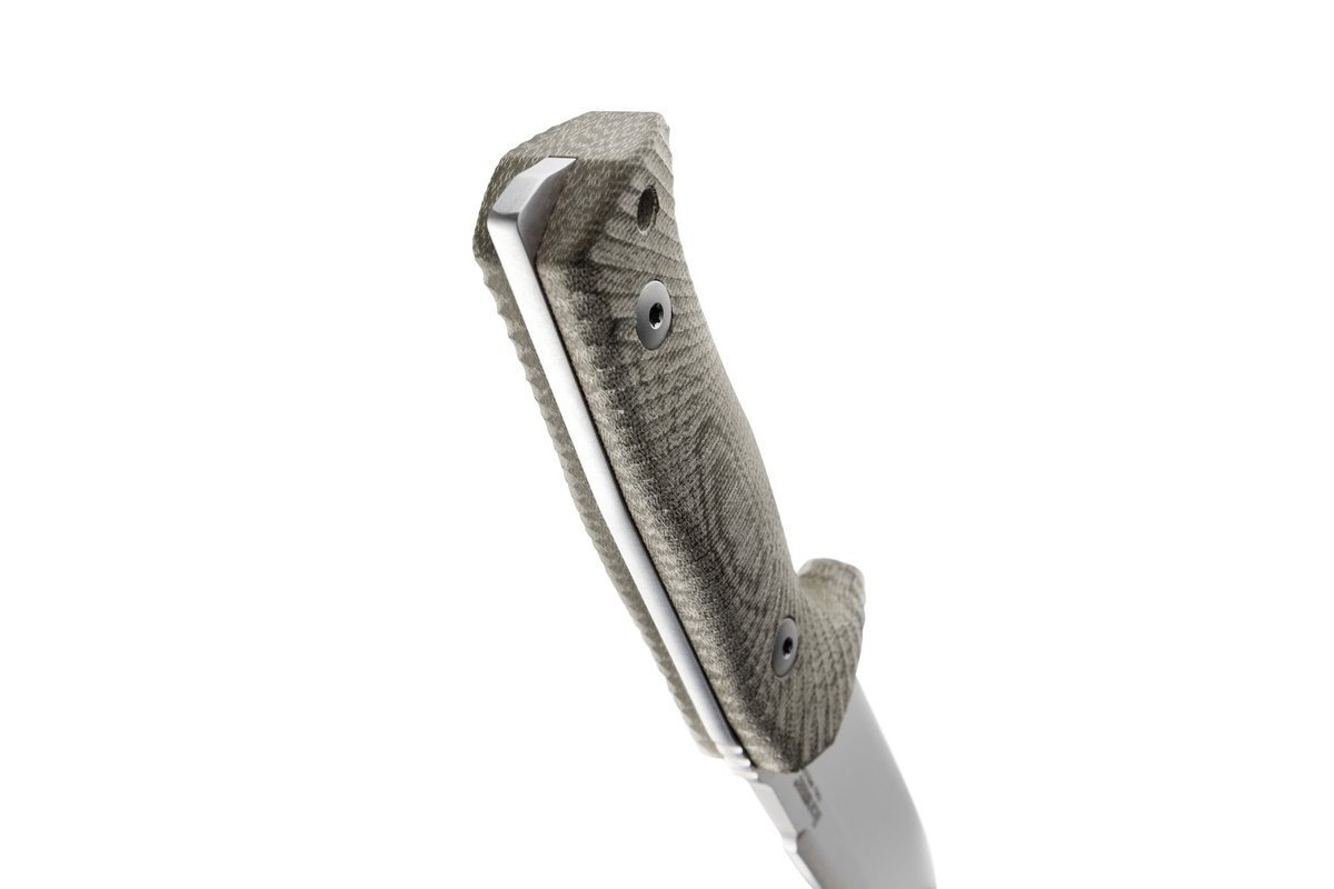 T5 Tactical Green Canvas Micarta, Satin a compact version of the tactical M7, the legendary knife from the Italian LionSteel manufactory. The aim was to create a more manageable, easier to carry but still reliable tool with a large blade for any field use. Also aimed at bushcraft, survival and hunting enthusiasts. A knife that will last for years!