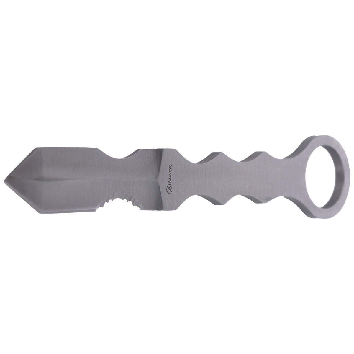 Thrower, strong throwing knife with full tang construction manufactured by the Spanish company Martinez Albainox. It can also be used as a handy knife thanks to its single-sided blade and small saw. It comes with an ABS sheath with a clip, allowing you to carry the knife on your belt or in your pocket.