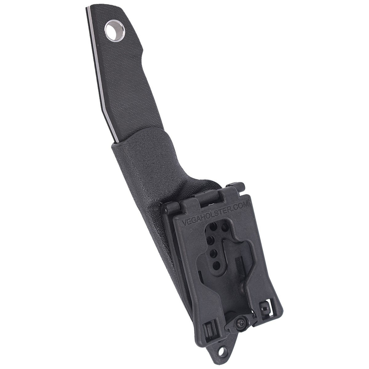 Vega Holster company. Light, made of black Kydex plastic with a multi-position Tek-Lok fastening. Facilitates discreet carrying and quick knife selection.