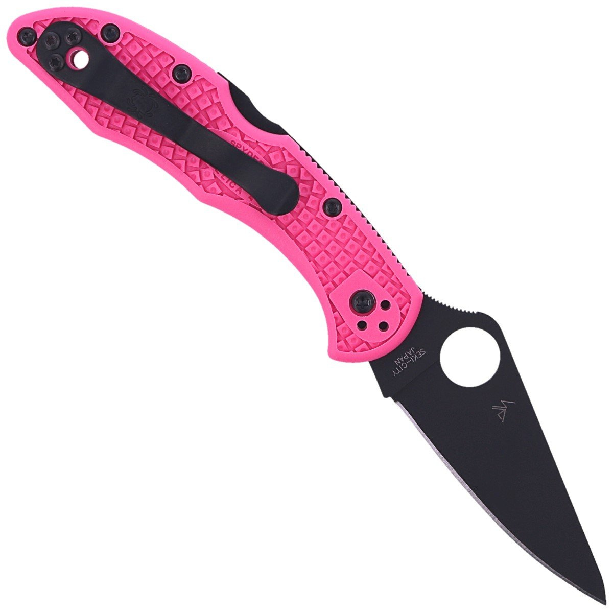 • Delica 5 FRN Pink / Black Blade fifth edition of the iconic knife with a blade made of American CPM S30V steel and shiny pink handle facings. Spyderco supports Pink Heals foundations by donating a portion of profits from the sale of knives with pink cover