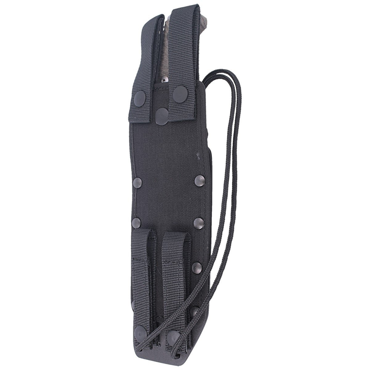 Vagina - plastic kydex combined with abrasion-resistant, waterproof Cordura in black. Secures against falling out and makes it easy to quickly retrieve the knife. Snap fastener keeps the knife from falling out. Compatible with the standard MOLLE allows the holster to be attached under the straps of the system M.O.L.L.E. (Modular Lightweight Load-carrying Equipment) or carried on a belt or on a mount.