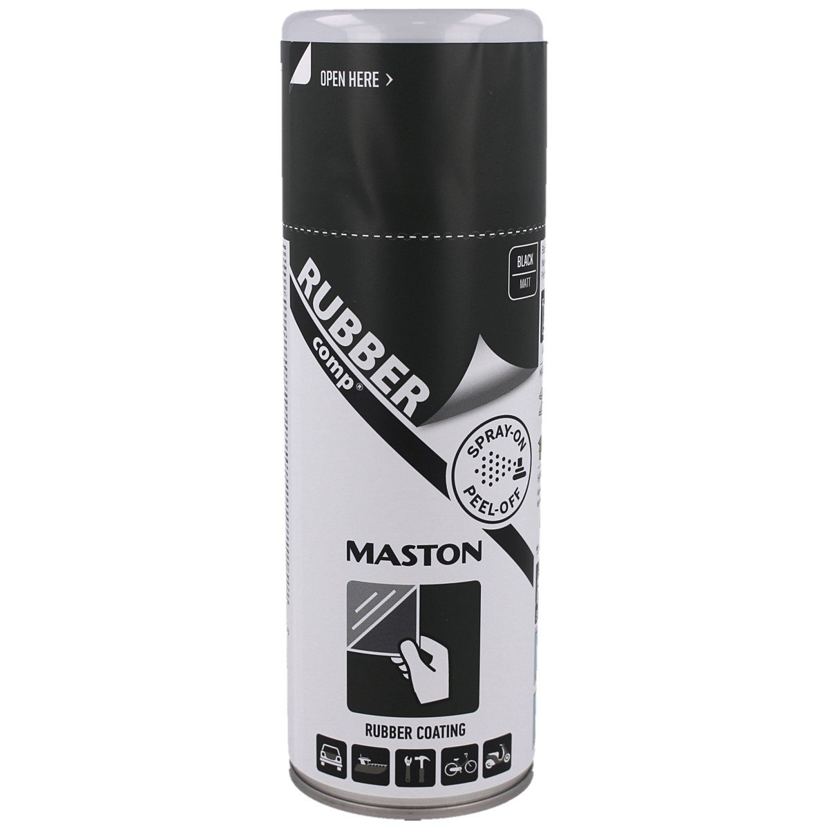 - Maston RUBBERcomp quick-drying rubber spray in the color: black matte, with a capacity of 400ml. It is used for wooden, metal and glass products, fabrics, rubber products and plastics.