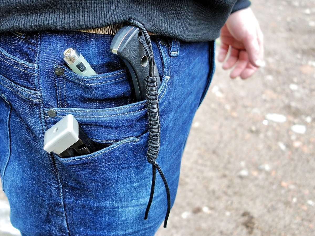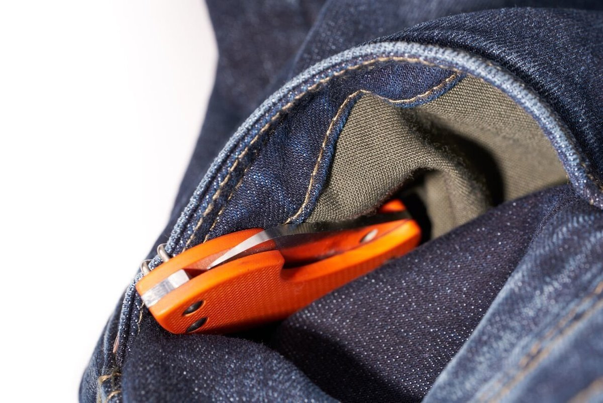 - two classic hip pockets with reinforced edges to carry items with a clip, eg knives