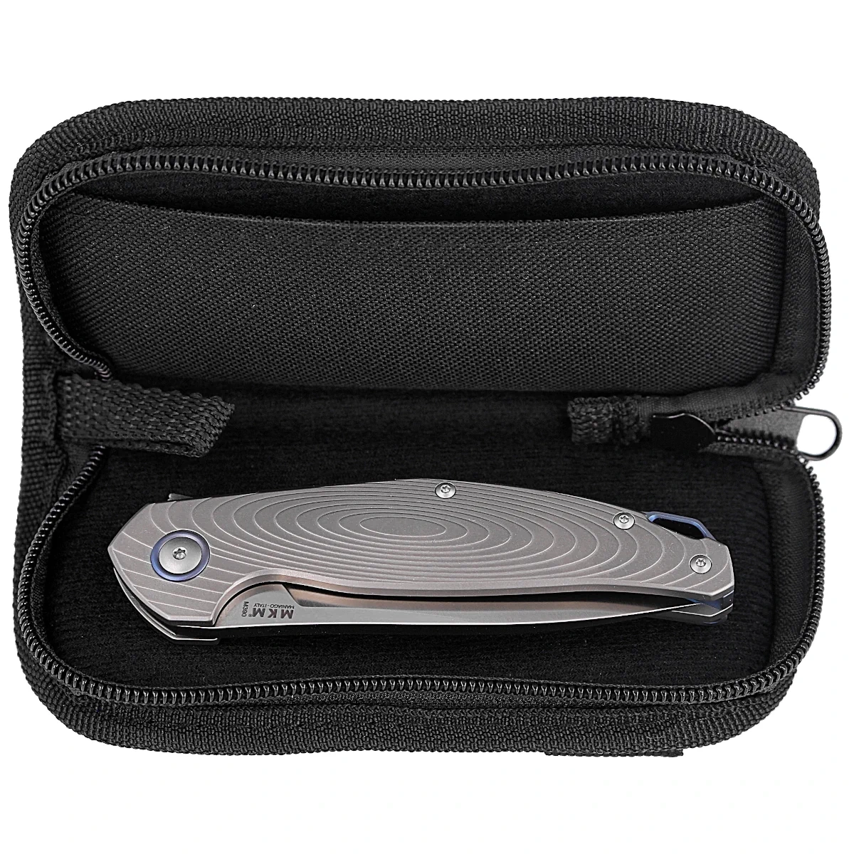 Goccia Bead Blasted Titanium, Satin when Danish knifemaker and knife designer Jens Ansø showed his custom model Neo, it became the dream of the "perfect knife" for many knife lovers. In cooperation with MKM, a top-quality production version of this model called Goccia was created. Goccia means "drop" in Italian and is meant to symbolize the first water-powered hammers in the forges that started the knife industry in Italy. The name is also reflected in the concentric ellipses carefully milled into the handle facings, which even mesmerize with their changing surface textures.