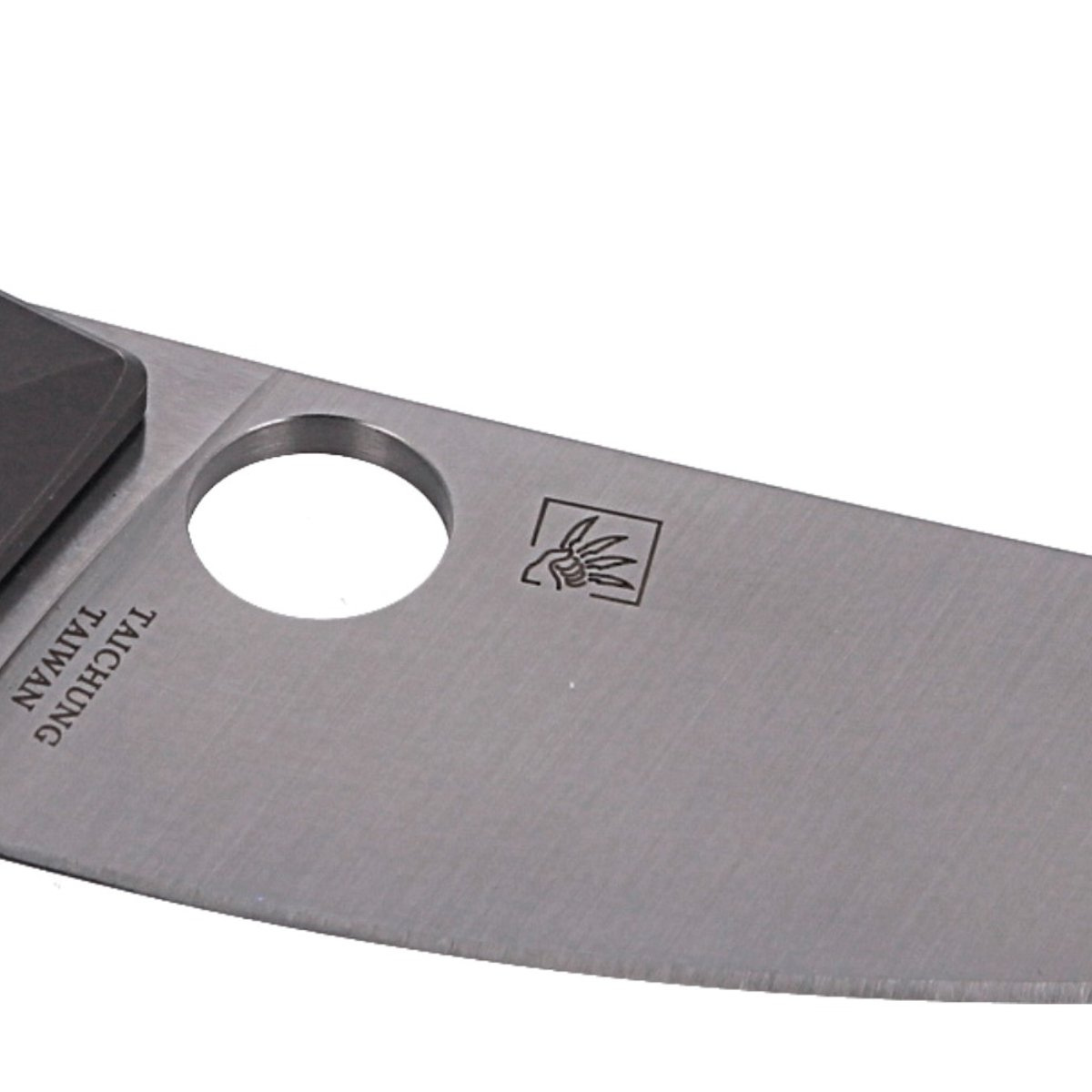 Blade - solid, 3 mm thick with a refined Steepfoot-like (sheep's foot) profile with a clearly marked blade belly. Plain blade, brought out with a full flat grind (full flat) for excellent geometry and strength. Round SpyderHole cutout (Spyderco patent) for opening the Blade also with sweaty hands.