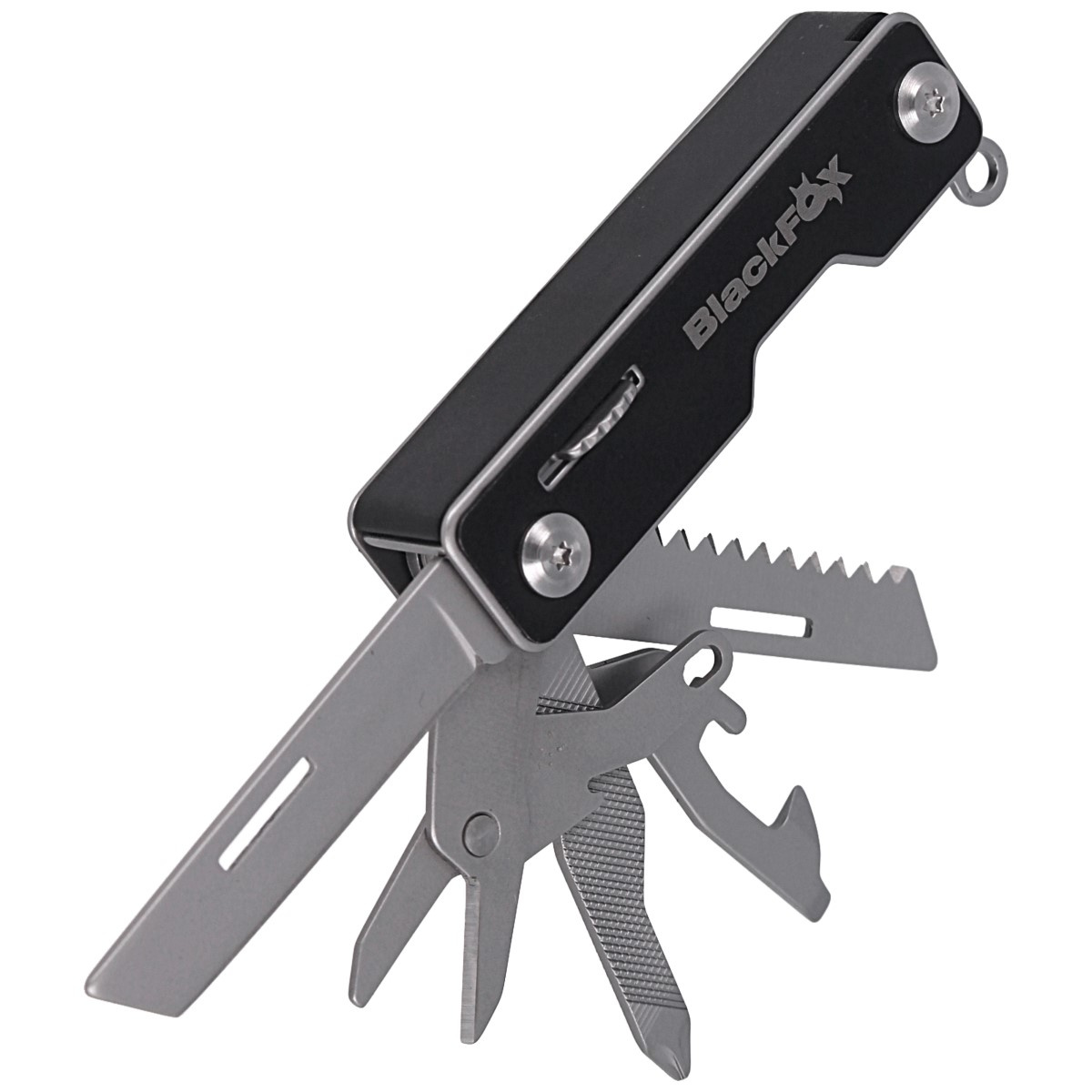 Pocket Boss Black lightweight, compact Multi-Tool by Italian brand BlackFox, features a locking mechanism on each tool. Thanks to the possibility of attaching it to the key ring, you can always have it at hand while on duty, at the shooting range, at work, at home, in the garden or out of town. An indispensable part of individual equipment of every policeman, soldier, paramedic, fireman. Number of blades 5 and functions 9. Multi-Tool has an excellent price / quality ratio. Bestseller!