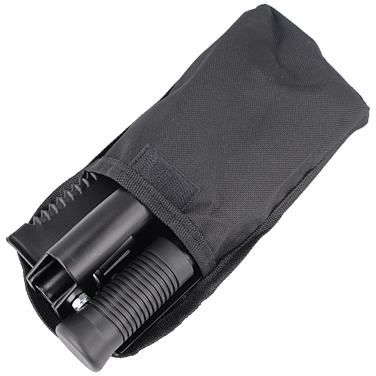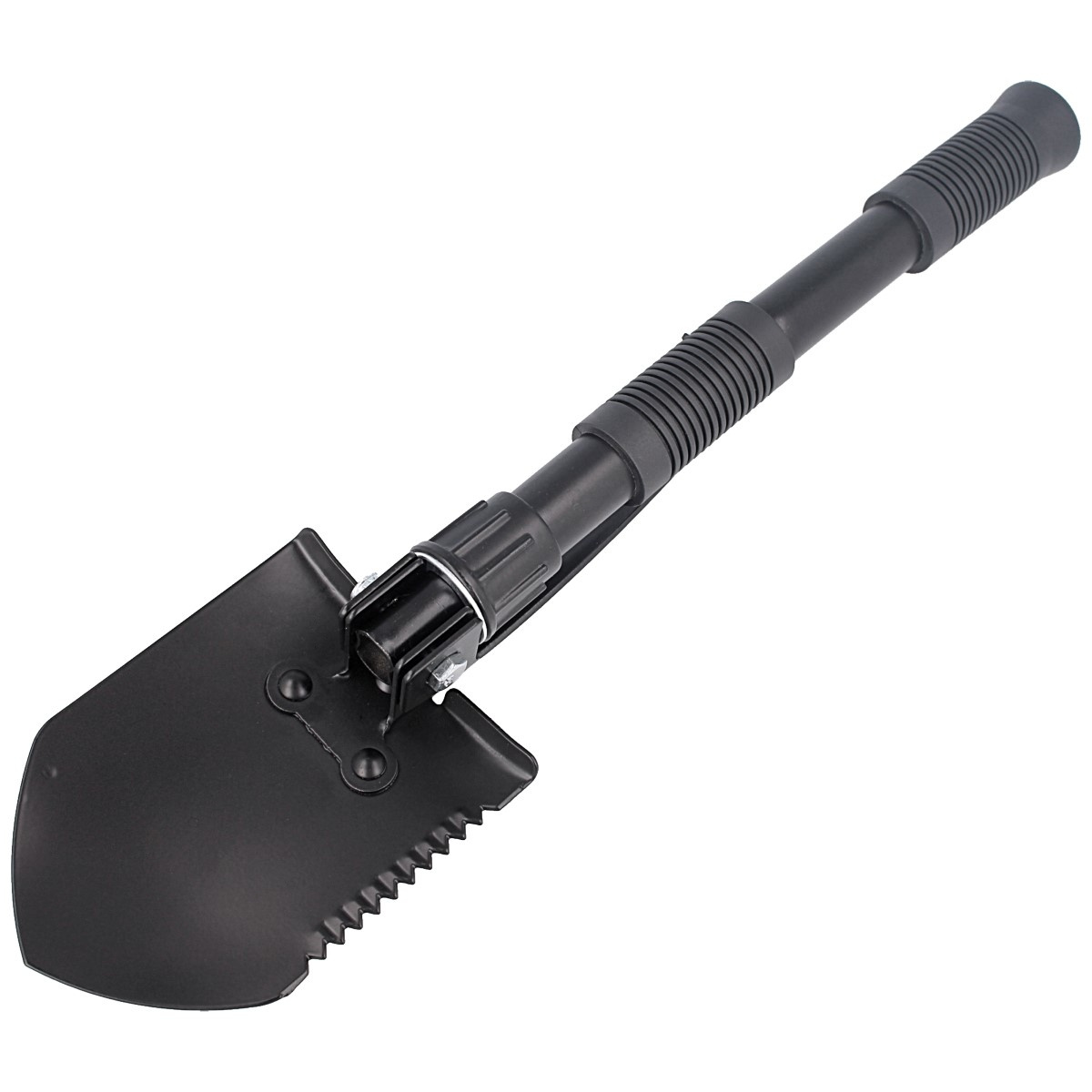 Shovel and pick - covered with black protective coating. On the side of the shovel serrated cutting edge can be used as a blade or saw. Thanks to the possibility of mounting at an angle of 90 or 180 degrees, we can adapt the shovel to the currently needed arrangement of tools