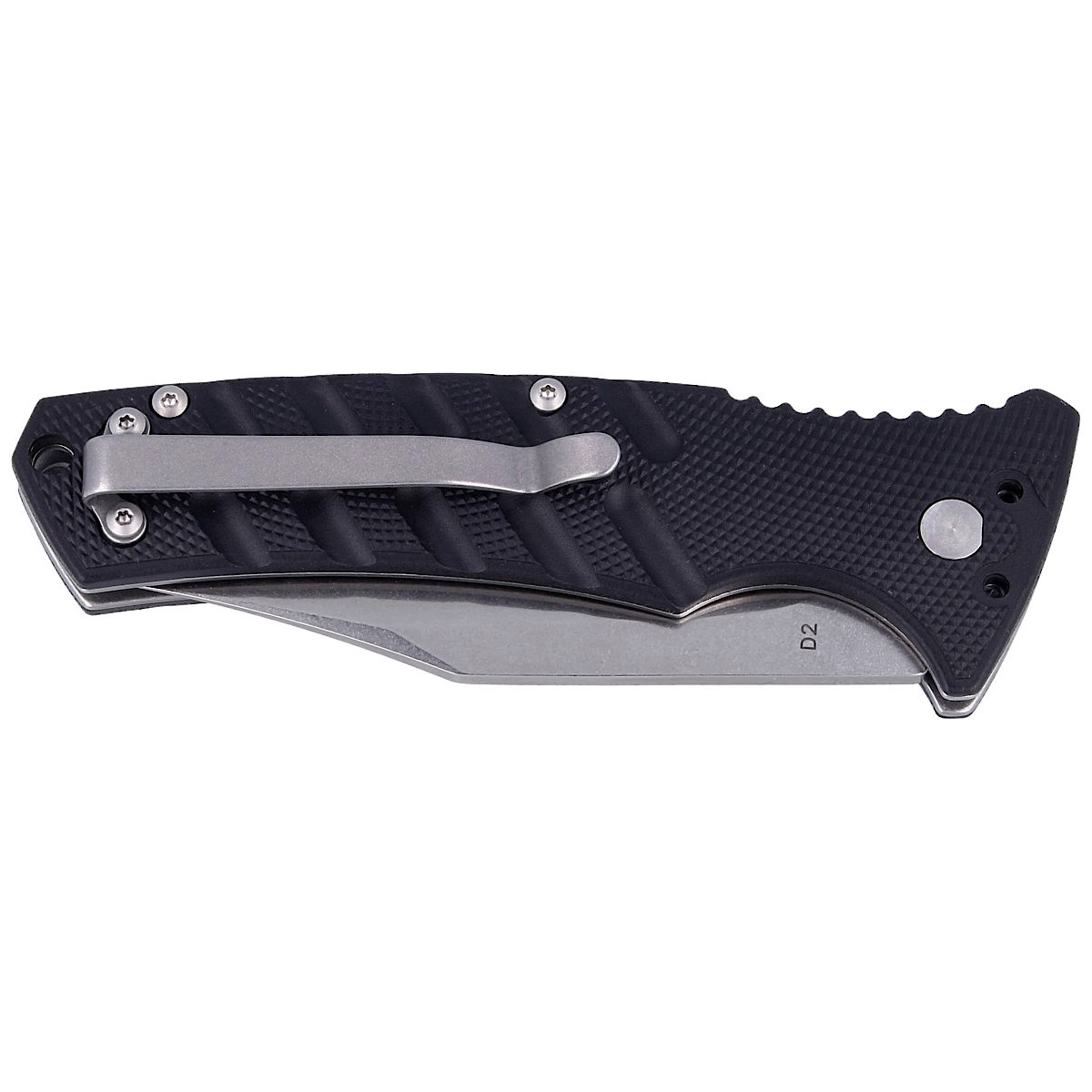 • BHQ Strike Bowie, Black Aluminum, Stonewashed D2 is a full-size spring knife from the Böker Plus series with extremely durable construction and remarkable design. Very good materials at an attractive price, German reliability!