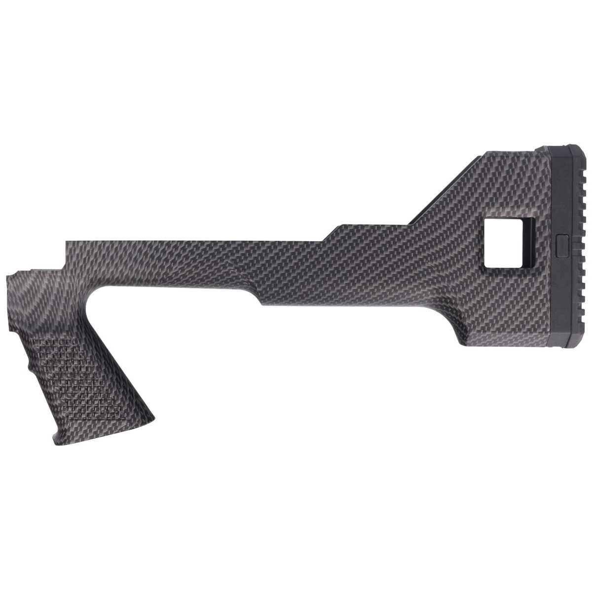 - Bullpup-type housing with an ergonomic pistol grip that makes it easier to hold the weapon steadily while shooting. Designed for the Throne Gen2 PCP air rifle. Made of carbon fiber. The flask is finished with a vertically adjustable rubber foot.