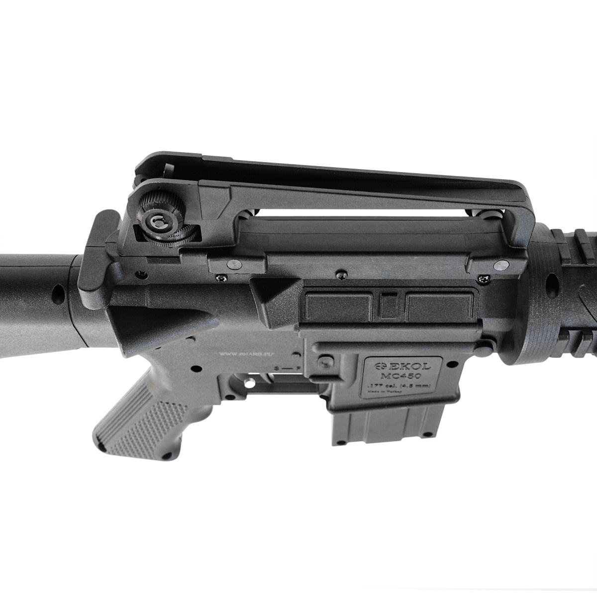 - Ekol MC Black, a replica of the legendary M16 automatic rifle that was on the equipment of American units fighting in Vietnam. Equipped with mechanical aiming instruments in the form of a musket and a peephole, as well as rails in the RIS / Picatinny stan
