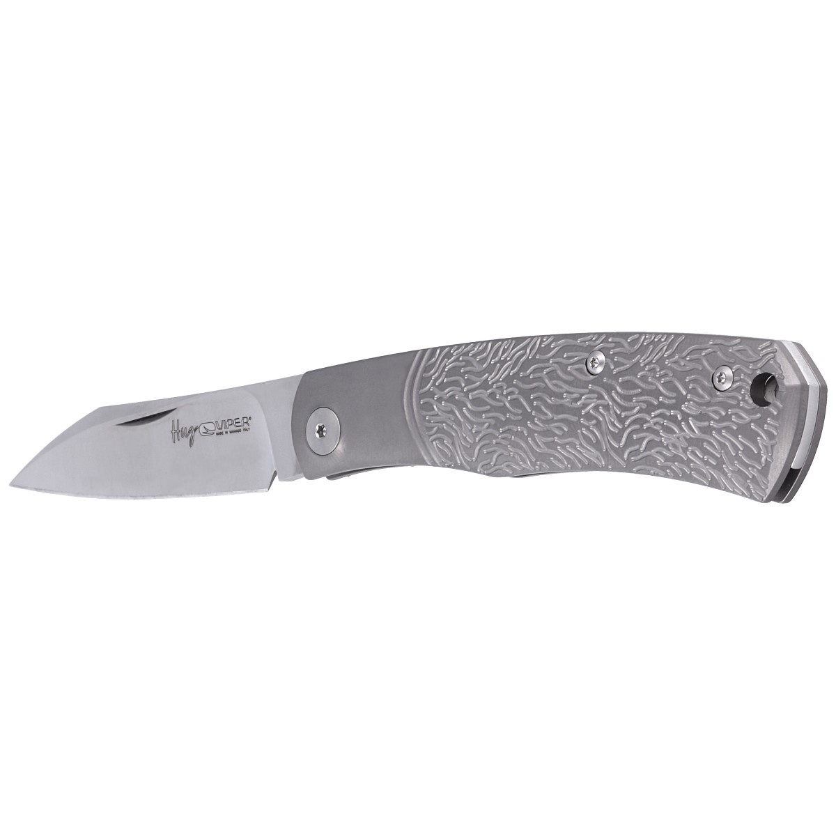 - Hug Gray Titanium Wolf, Satin lightweight folder equipped with SlipJoint mechanism. Design by French custom knife maker Sacha Thiel. Slim handles with wolf fur pattern and modified Wharncliffe blade for an aggressive look and functionality.