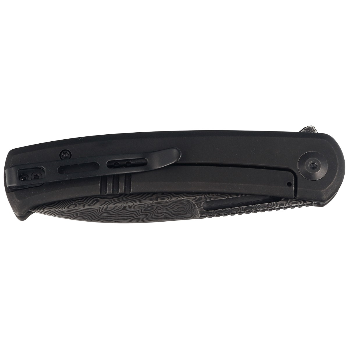 Cetos Twill Carbon Fiber, Black Damascus slim folder that you open in two ways with a milled double-sided nail nick or a flipper flipper, and thanks to the support of ceramic ball bearings the action of the blade opening mechanism is extremely smooth. An exceptional EDC knife offering excellent value for money with an ergonomic handle that fits the shape of the hand.