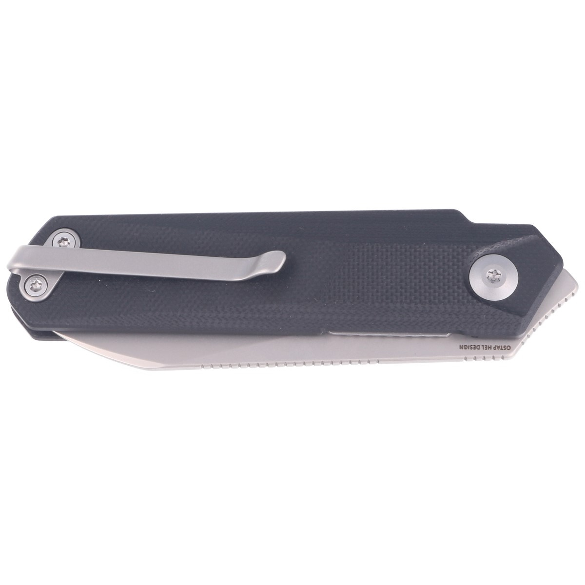 • Ki-V Plus G10 Black, Silver Bead Blasted enlarged version of the compact Ki-V knife by Polish designer and knife maker Ostap Hel. It has been lengthened by about 1 inch, with a Reverse Tanto blade of Nitro-V steel and G10 handle grips.