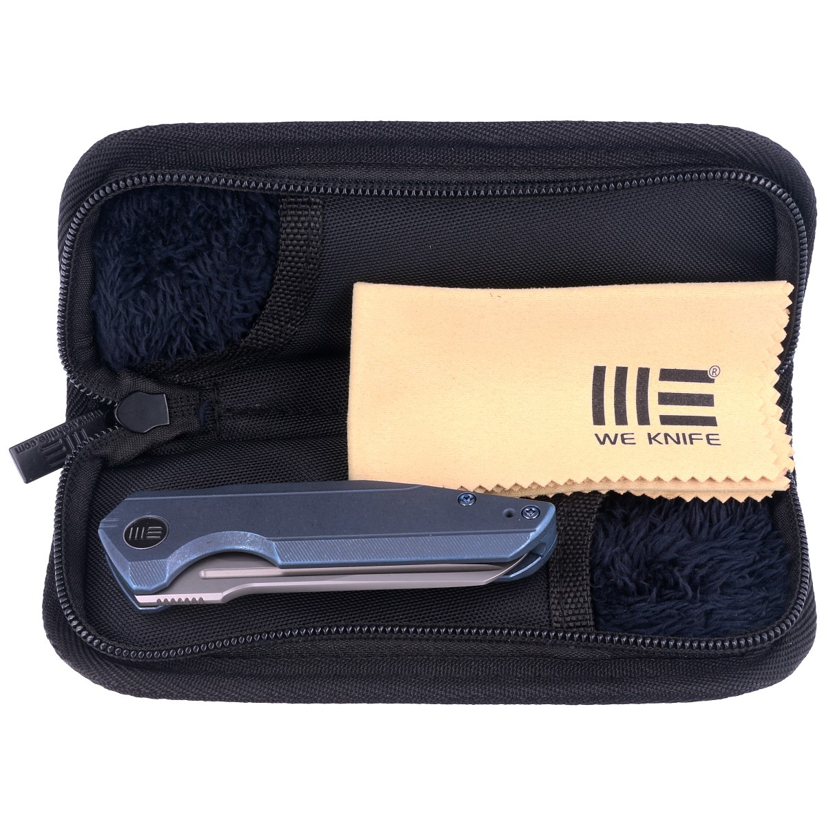 The handle - thick pieces of titanium 6AL4V connected to each other with a titanium backspacer. The simplicity and robustness of the design give confidence in many years of use. The two-position clip (right/left), made of titanium, allows you to carry the knife in tip-up position. The backspacer has a hole for threading a safety or decorative cord. As in other models, the pivot axis is decorated with a stylized manufacturer's logo.