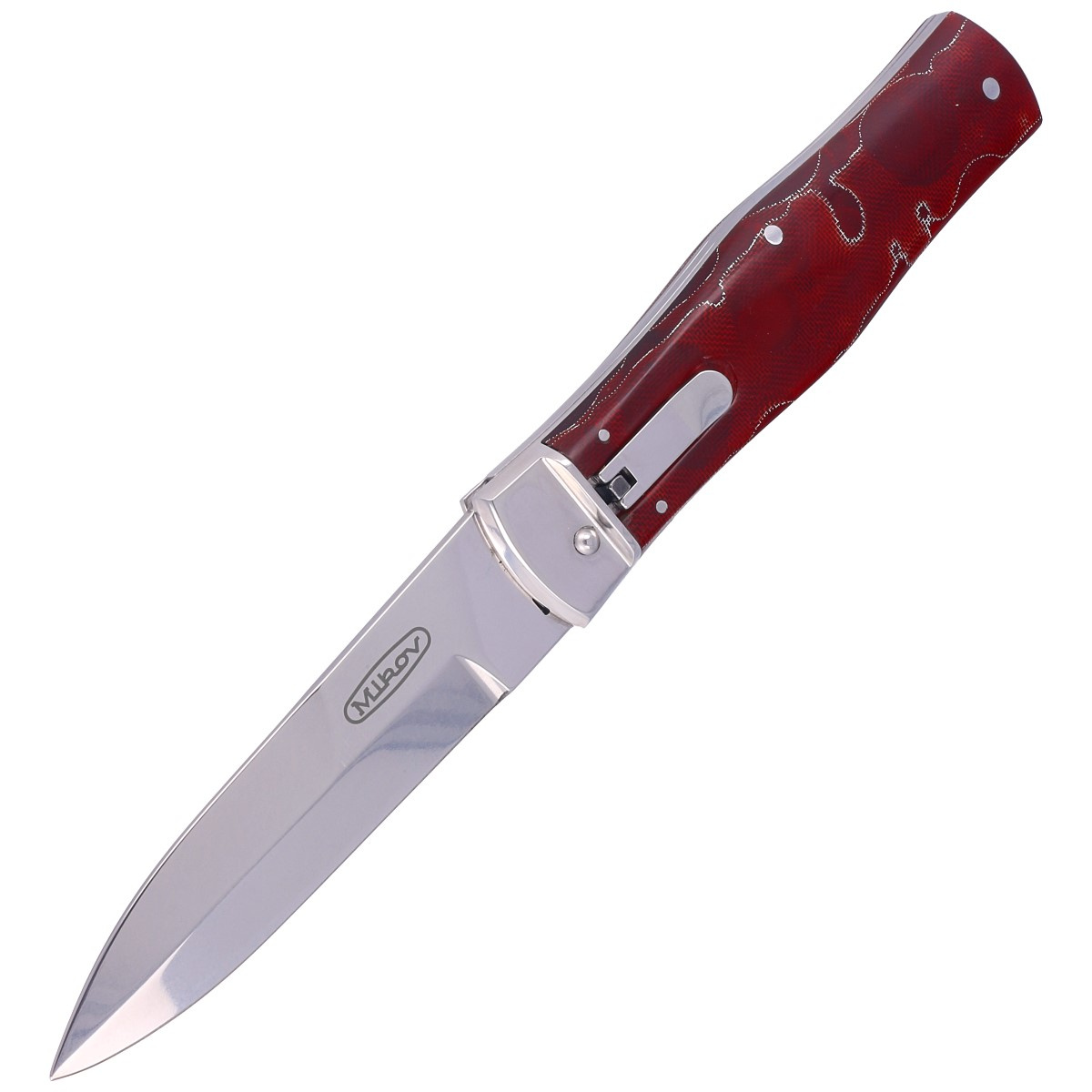 - Predator Raffir Red, Mirror an automatic knife (switchblade) from Czech company Mikov from Mikulasovice with a blade made of N690 steel and liners made of phenomenal composite material Raffir with an amazing 3D pattern.