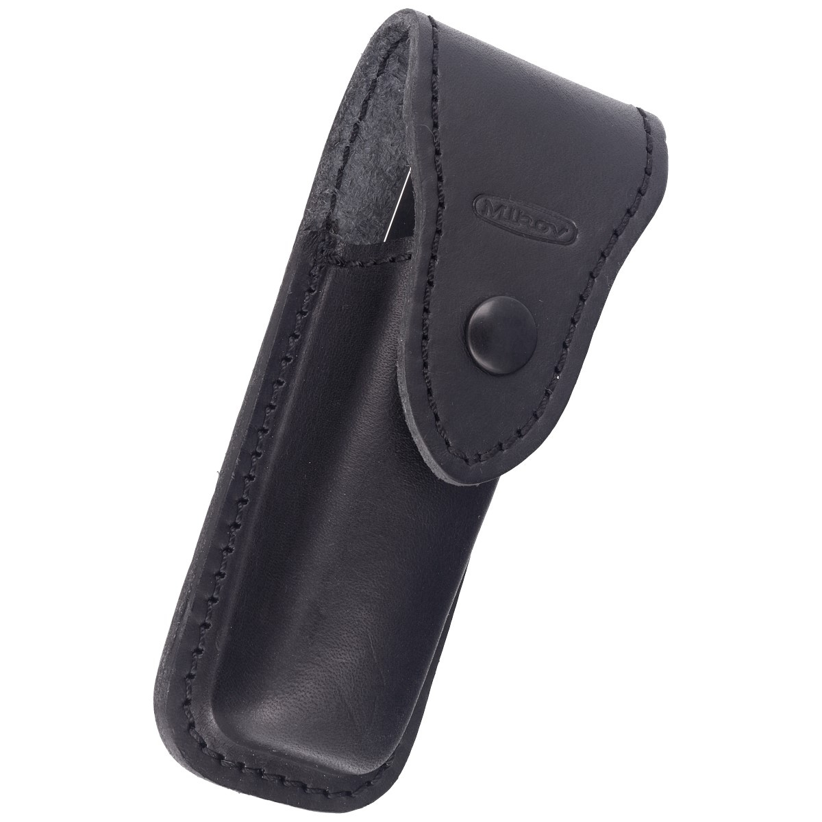 Case - fastened with a snap button. Made of natural leather in black with embossed manufacturer's logo. The sheath has a fastening to the belt or the equipment allowing to carry the knife in an upright position.