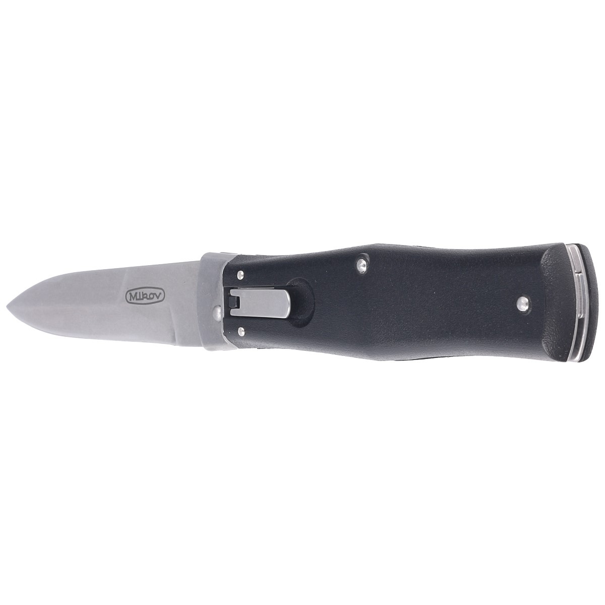 - Predator Black ABS, Stonewashed N690. Mikov automatic knife with clip and ABS linings. Robust, heavy-duty construction, two strong opening springs, and a distinctive click when opening distinguish the Predator from other spring-loaded knives.