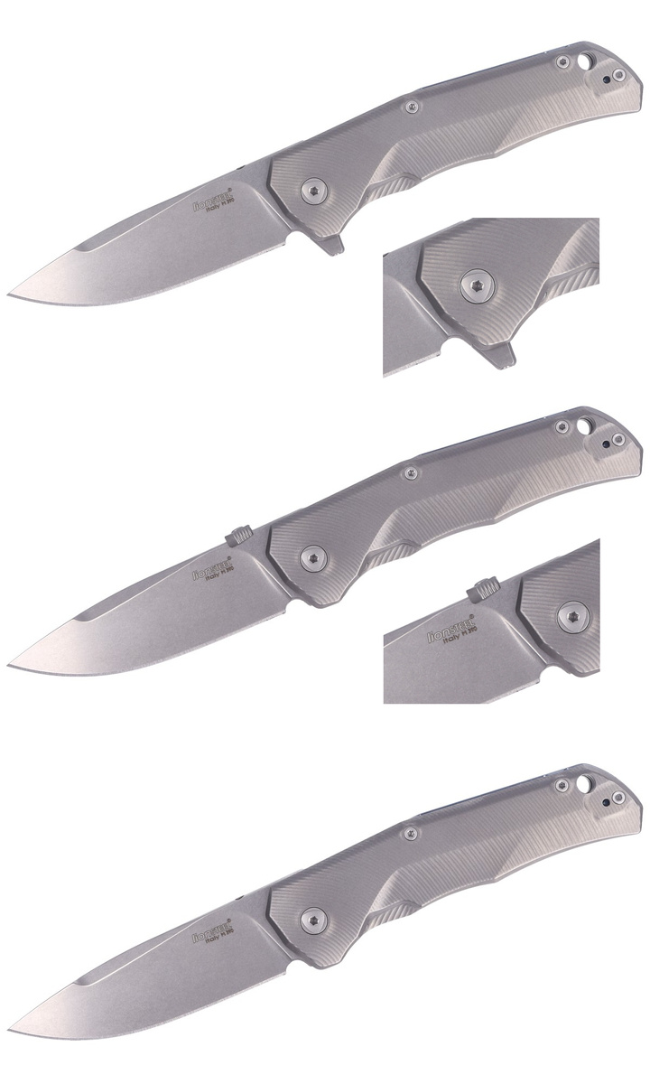 Three Rapid Exchange - a patented system with three different ways to open the blade. Full version with Thumb Stud disk and Flipper. Intermediate version with Thumb Disc or Flipper. Basic version without Filpper and without Thumb Disc, useful in countries where there is a ban on one-handed blade knives in public places.