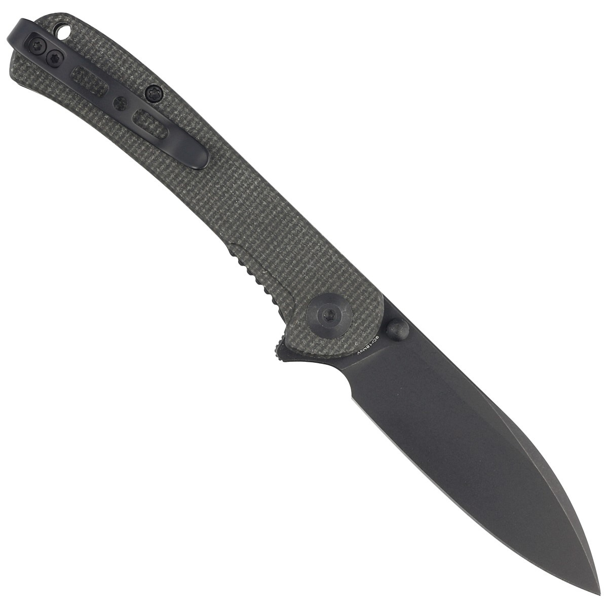 Handle - made of micarta, a composite material of pressure-pressed canvas with synthetic resin. Chamfered cover edges eliminate sharp edges for comfort, and a fore finger groove improves grip security. The open-backed design attached with steel spacer sleeves reduces weight and makes cleaning easier. A two-position, right/left deep carry clip allows you to carry the knife discreetly in your pocket in tip-up position (blade tip up).