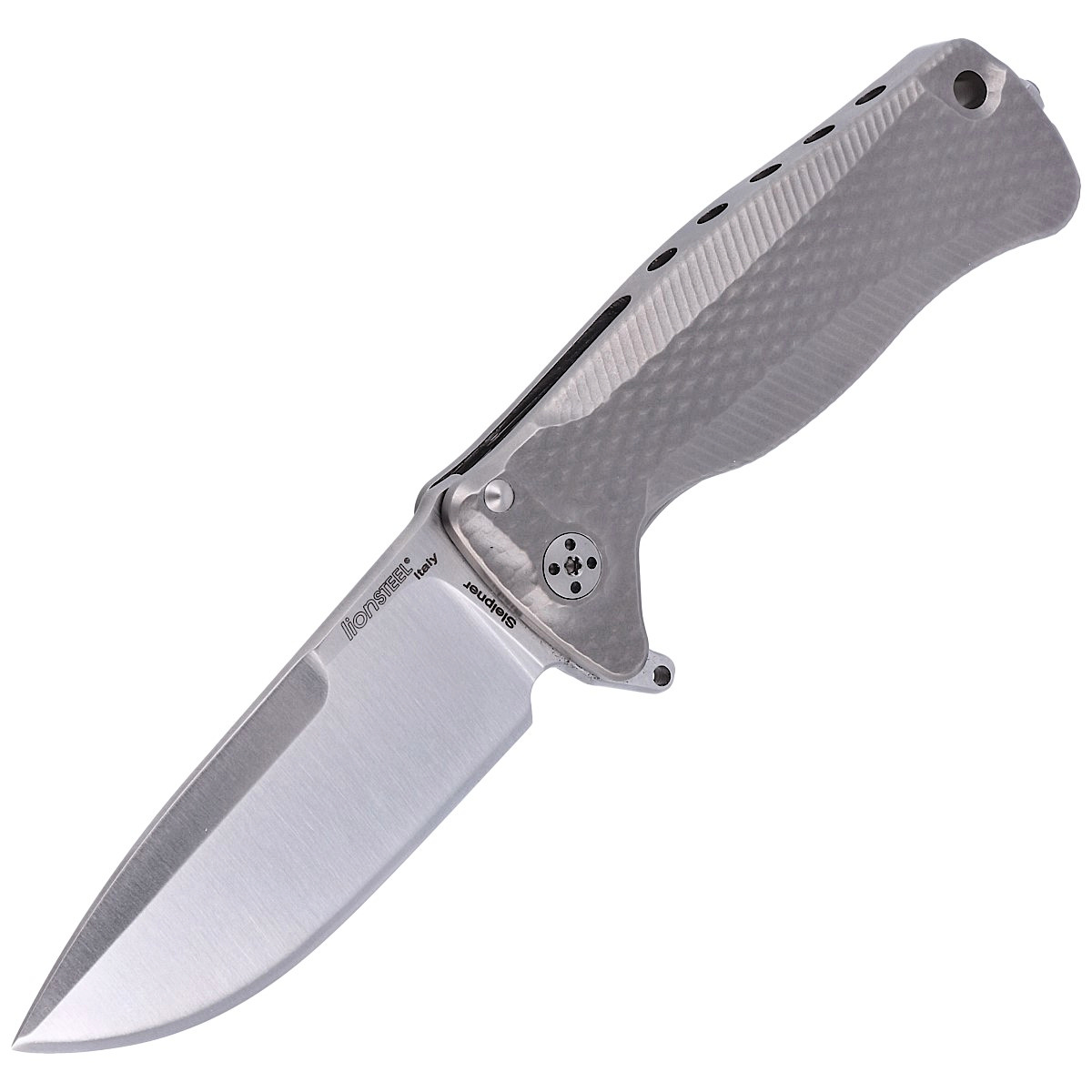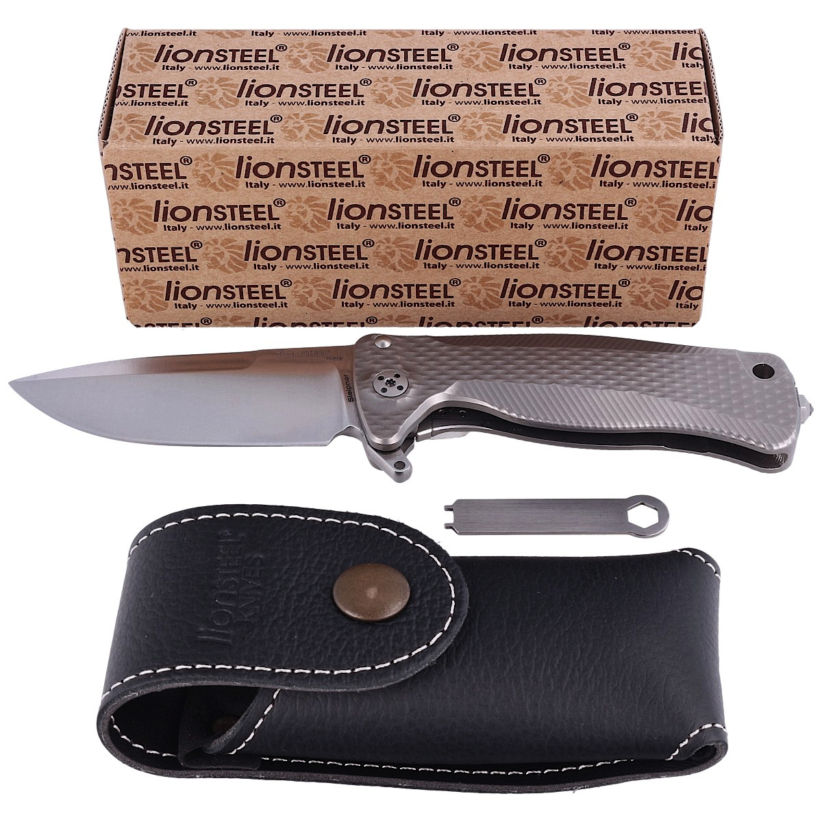 • SR22 Grey Titanium, Satin folder from Italian manufactory LionSteel. A smaller version of the SR11 knife, which was an evolution of the historic SR-1 model, an award winner at the Blade Show. Lightweight EDC folder with exclusive Solid Knife technology