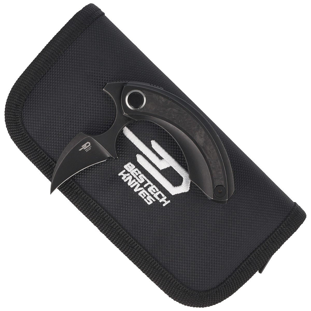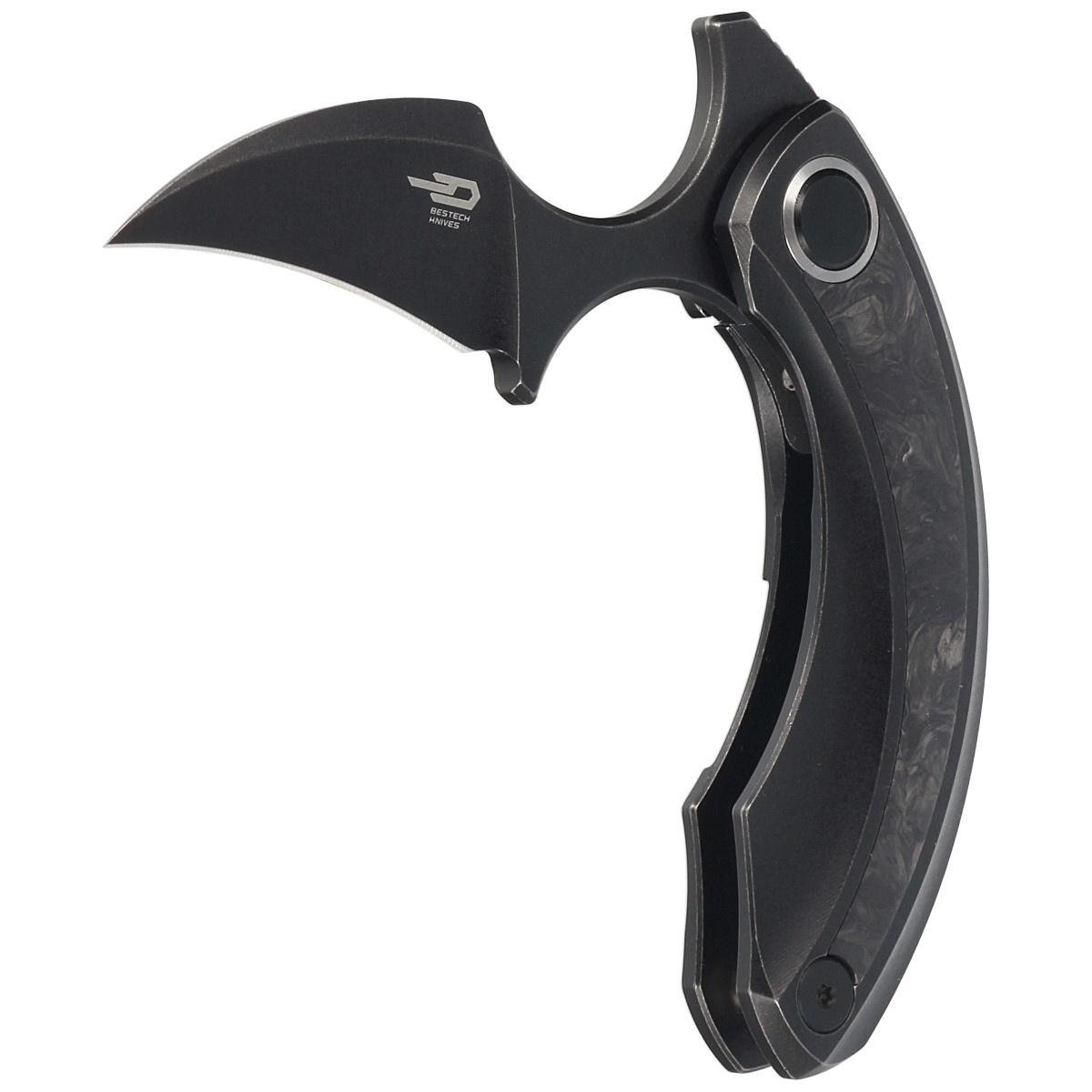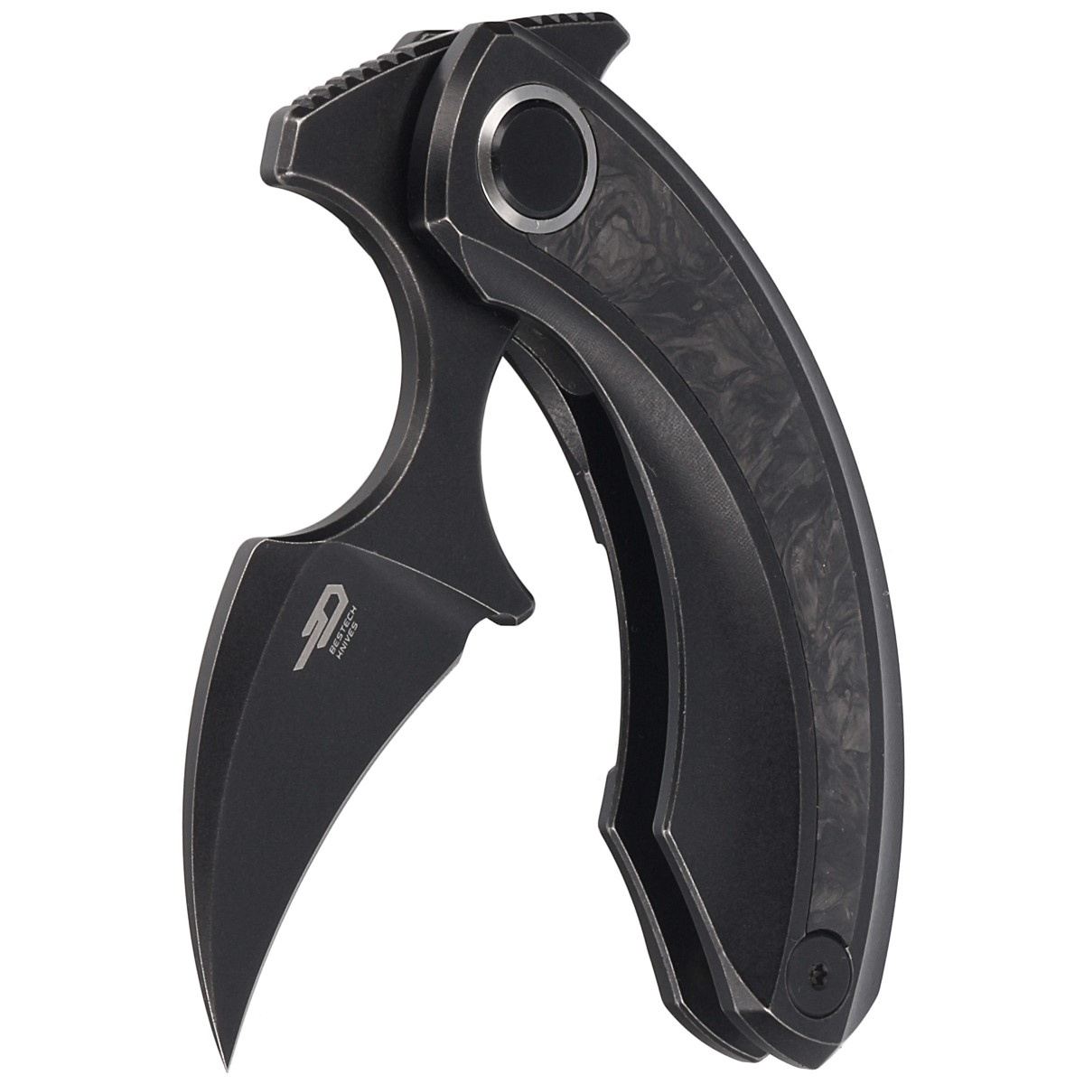 Strelit Black Titanium / Marbled Carbon Fiber, Black Stonewashed extraordinary push dagger folder for discerning buyers, the result of cooperation between Polish designer Ostap Hel and Bestech Knives company. Ergonomic handle, excellent blade steel!!!