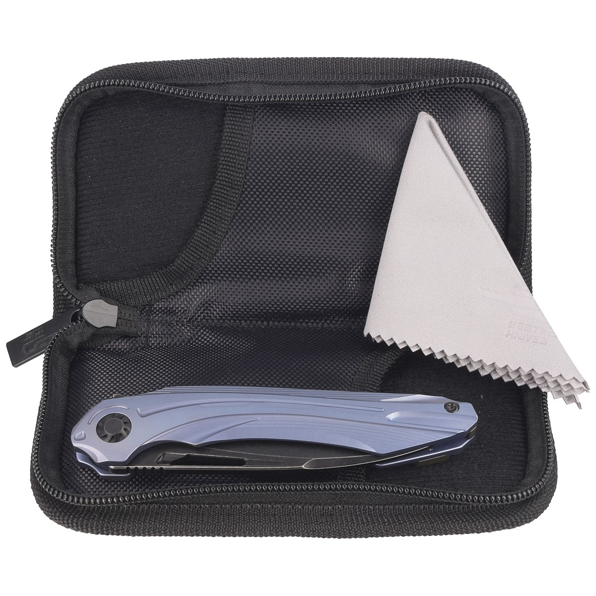 Case - the knife is packed in a zippered nylon soft pouch with the brand's logo for safe carrying and storage of the folder.