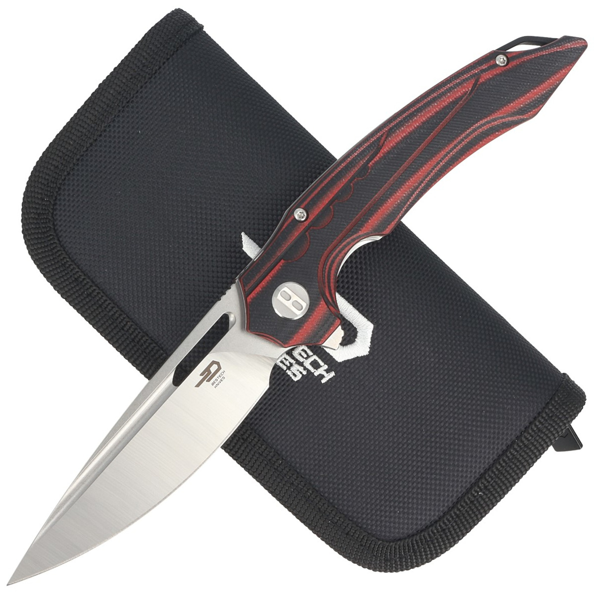 Handle - made of G10 composite (pressure-pressed fiberglass with synthetic resin) in two colors, beveled edges of the sheaths eliminate sharp edges Screwed to a solid steel backspacer, in its upper part a hole for a safety or decorative cord. The pivot is decorated with a stylized letter "B". A titanium, single-position, right-handed deep-carry clip allows you to carry the knife discreetly in your pocket in the tip-up (blade tip up) position. A fore finger groove improves grip security.