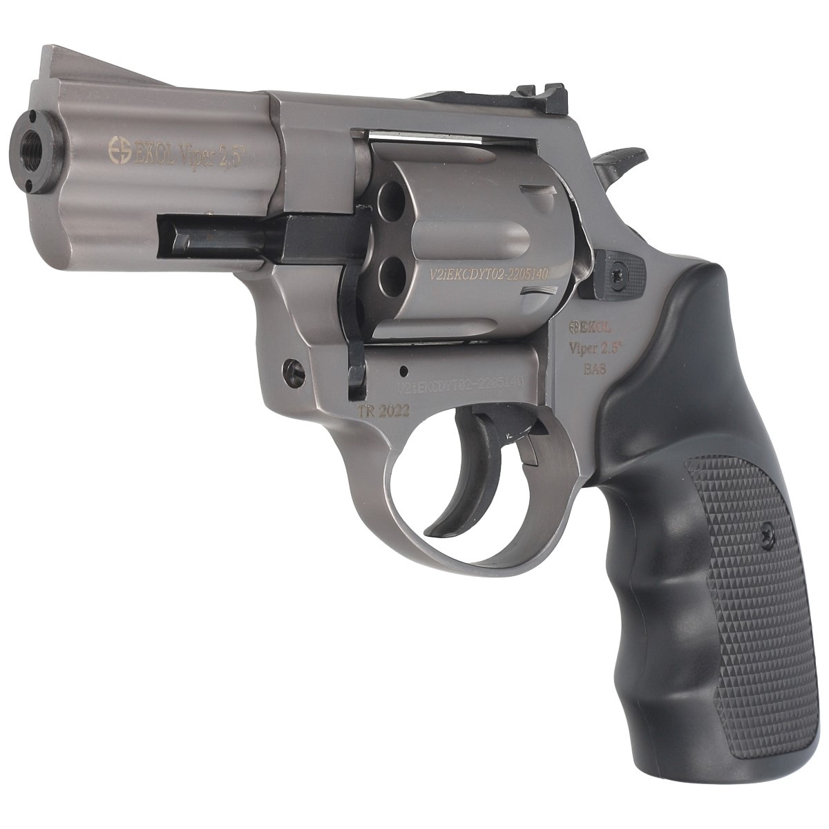 Ekol Viper 2.5" .22L, alarm revolver with 2.5 inch barrel for side-firing bang ammunition .22 long blanc/6mm long. Appearance modeled after popular brand revolvers Smith & Wesson.