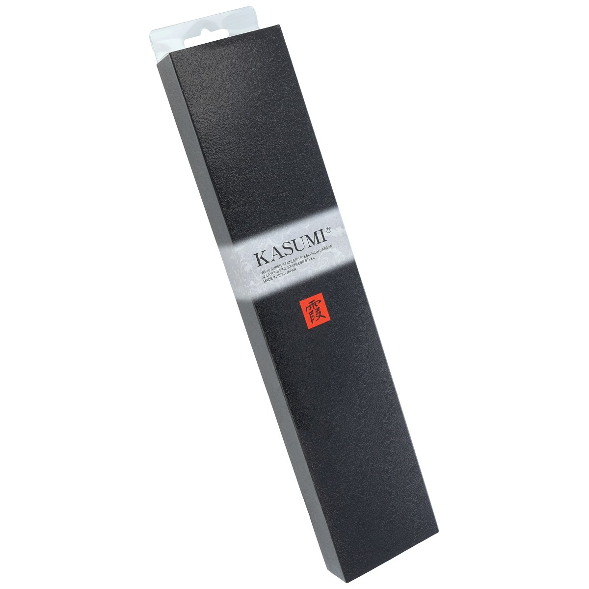 Kasumi is a spring mist, a well-known phenomenon in Japan that settles over the mountains and sheltered valleys of rural Japan. The pattern on the blade tries to convey the beauty and mystery of this phenomenon. Kasumi knives are manufactured in Seki City famous for producing the highest quality knives.