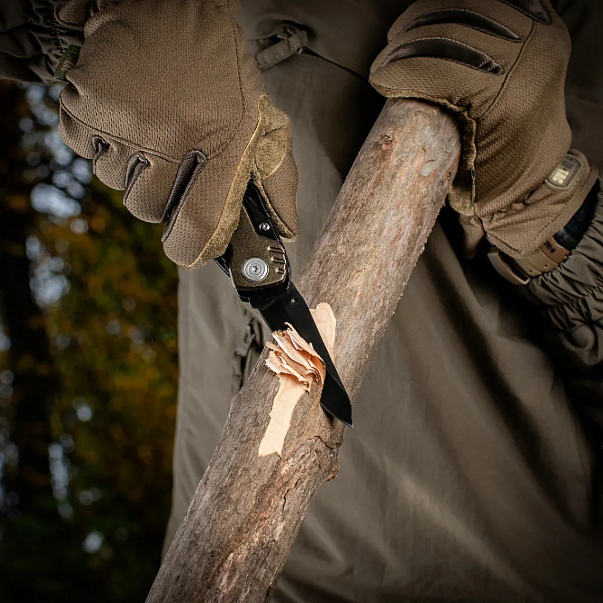 Blade - made of 420 stainless steel. The small thickness of the blade combined with a high flat grind gives excellent extreme cutting performance. Opening with a thumb stud (thumb stud). We can open all tools except the combiner without unfolding the tool. The blade is locked with a liner lock.