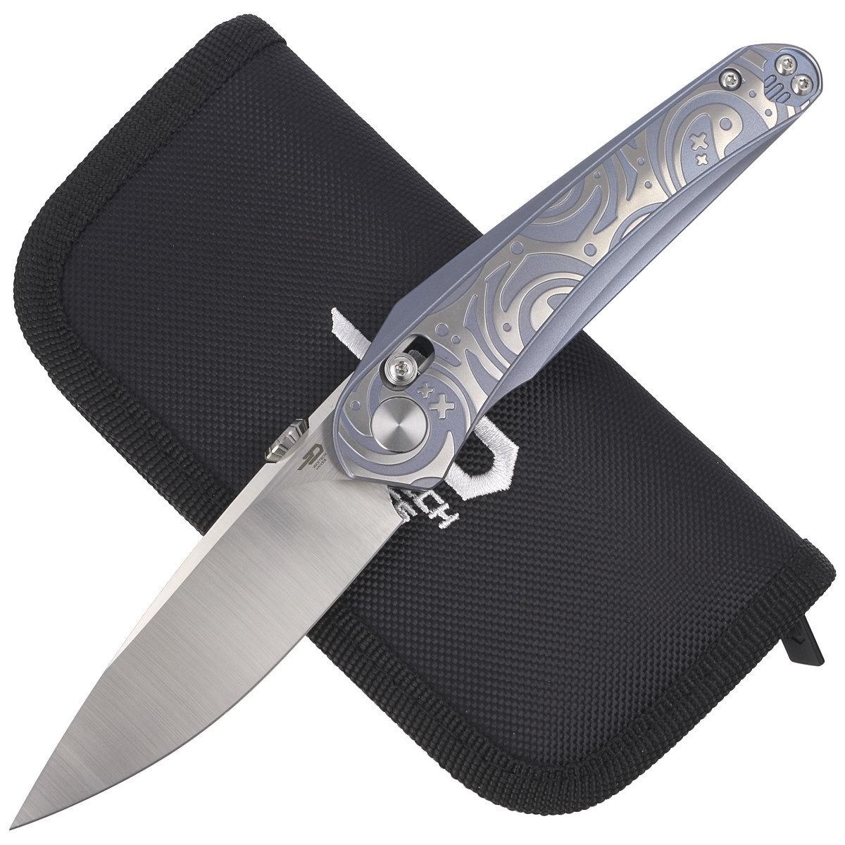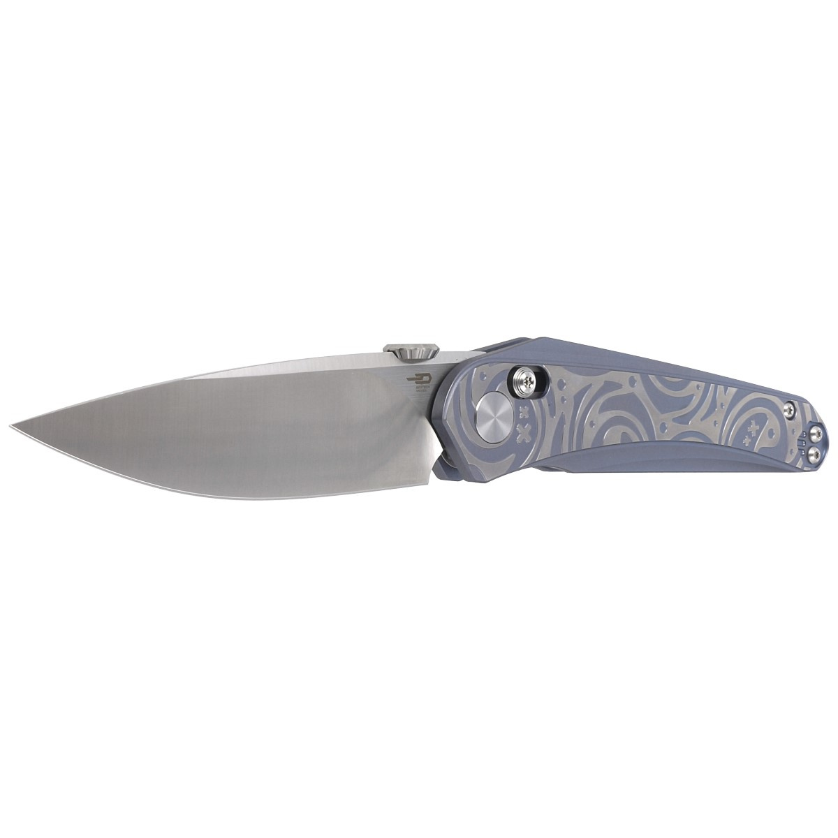 Mothus Blue Titanium, Satin an artful EDC folder aimed at discerning buyers, the result of cooperation between Polish designer Grzegorz "Kombou" Grabarski and Bestech Knives company. Intricately decorated titanium handle, excellent blade steel, intuitive locking mechanism!!!