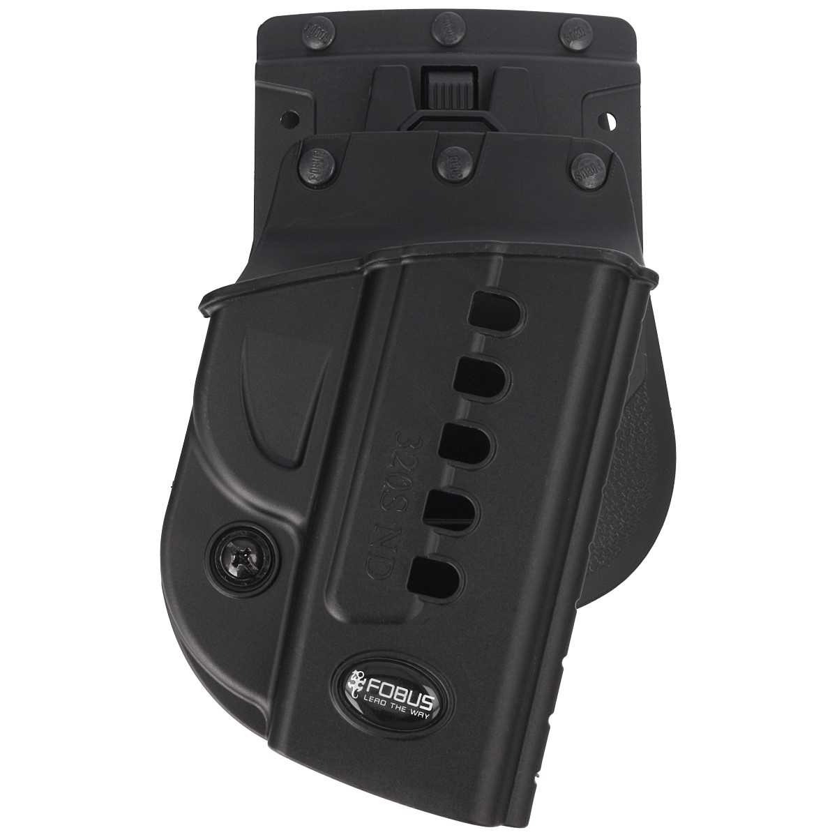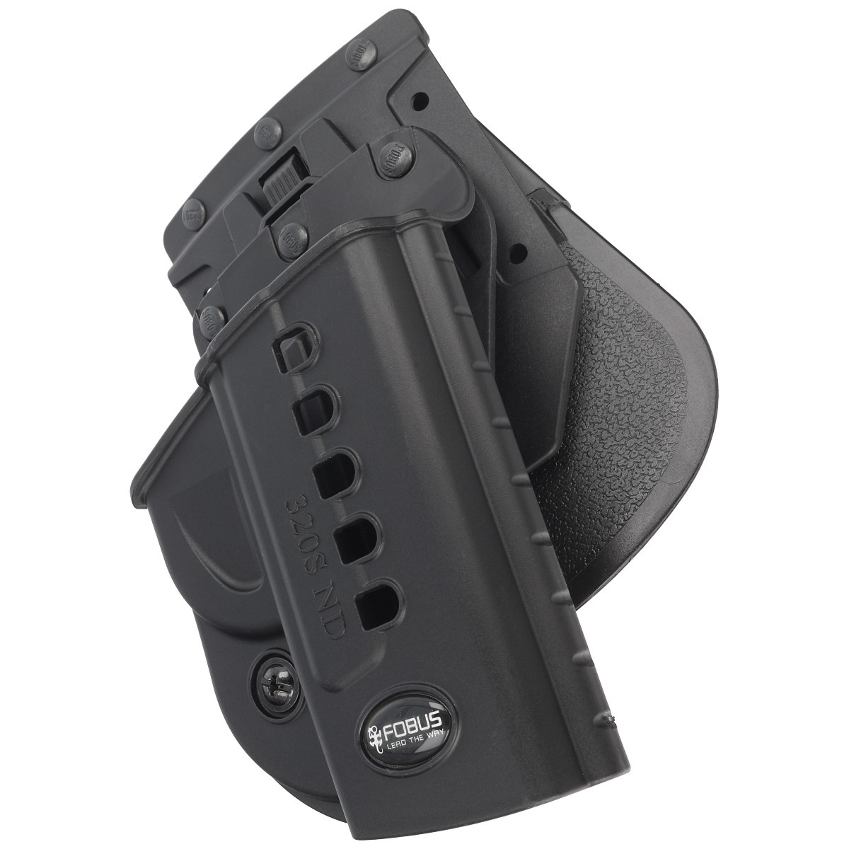 320S ND QL RP Outside the Waist Band (OWB) type ND holster from Israeli company Fobus with a universal single rail platform (RP1) equipped with the QuickLock system enabling quick release of the holster. The holster protects the weapon from damage and does not tend to move. Made by injection moulding from scratch-, impact- and temperature-resistant nylon, a high-density plastic. Right-handed version.