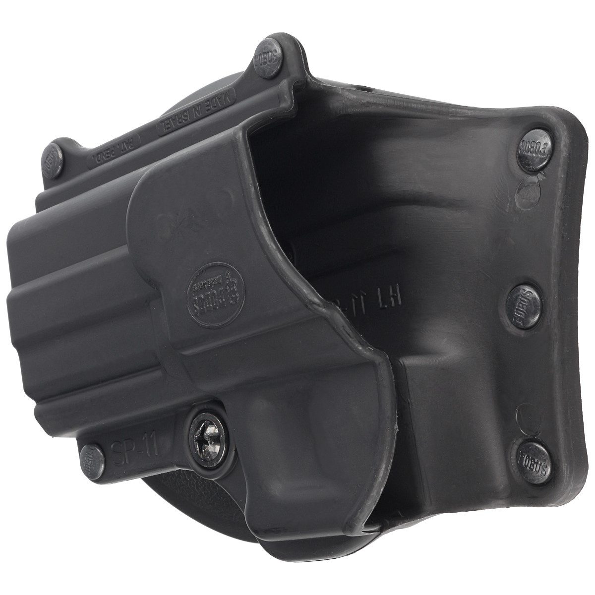 SP-11 TR LH (Paddle) kabura open type PRH (Passive Retention Holster) an israeli company Fobus. Lightweight, simple design contributing to low weight. Low profile makes it easier to conceal the weapon, increasing the comfort of carrying it. Holster protects well from damage, does not tend to move around. Made by injection molding from scratch, impact and extreme temperature resistant high-density plastic. Version leftmanual.