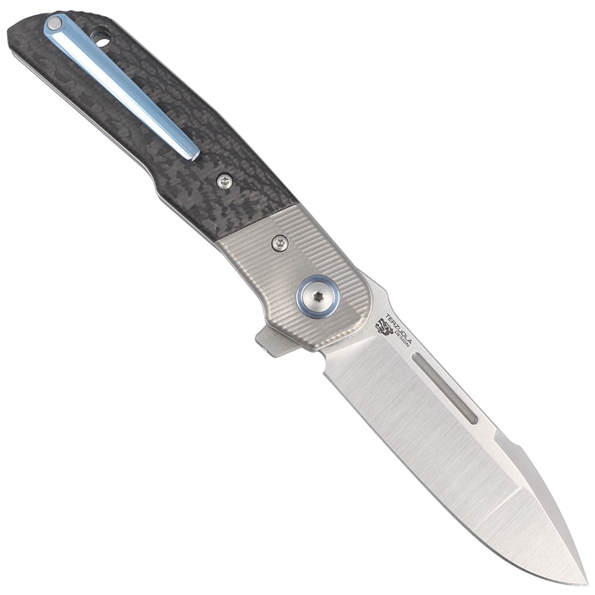 Clap Carbon Fiber, Satin, design by Bob Terzuola. Sturdy, easy to carry gentleman's folder. Made of the best materials, Carbon Fiber, titanium and M390 steel. Excellent ergonomics, the perfect handheld knife. Bestseller!