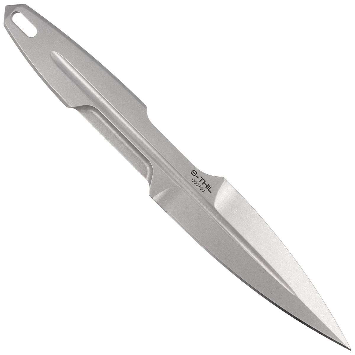 • S-THIL Stone Washed. Spare tactical knife of monolithic construction, milled from 5mm bar of N690 steel. The Spear Point blade has been heat treated to 58 HRC for the best combination of edge retention and strength.