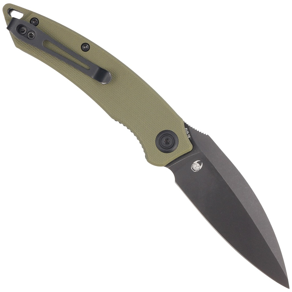 - Leaf Green G10, Black Stonewashed handy EDC folding knife. Blade drop point made of AUS-10 stainless steel, Front flipper blade for opening and Handle made of virtually indestructible G10. Excellent value for money! Bestseller!